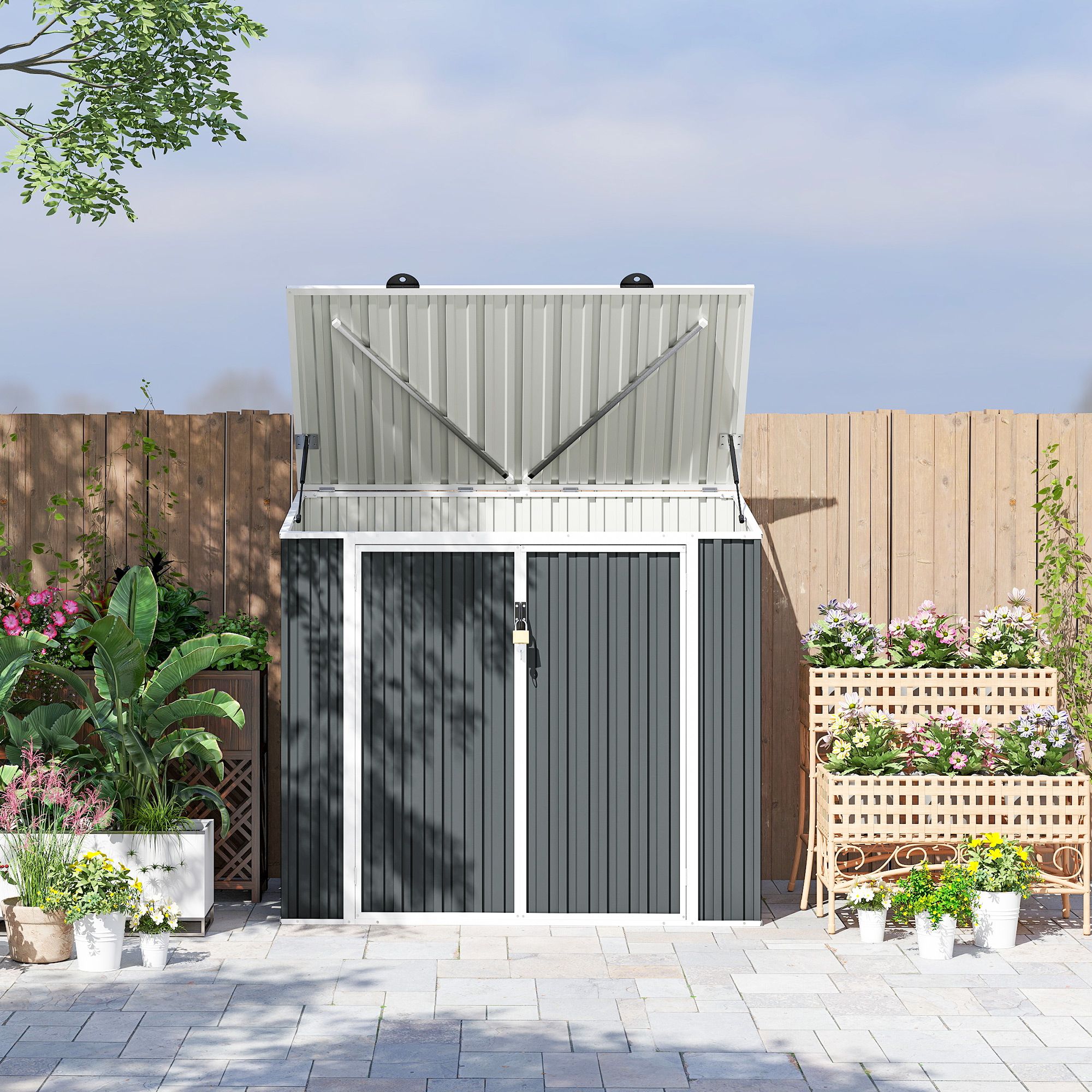 - CORRUGATED STEEL FRAME: A strong structure making this storage unit suitable for extended outdoor use - with a weather-resistant coating for extra protection.