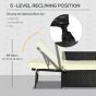 5PC PE Rattan Sun Lounger, Outdoor Wicker 5-level Adjustable Recliner Sofa Bed with Storage Side Table, Footstools, for Patio, Garden, Black