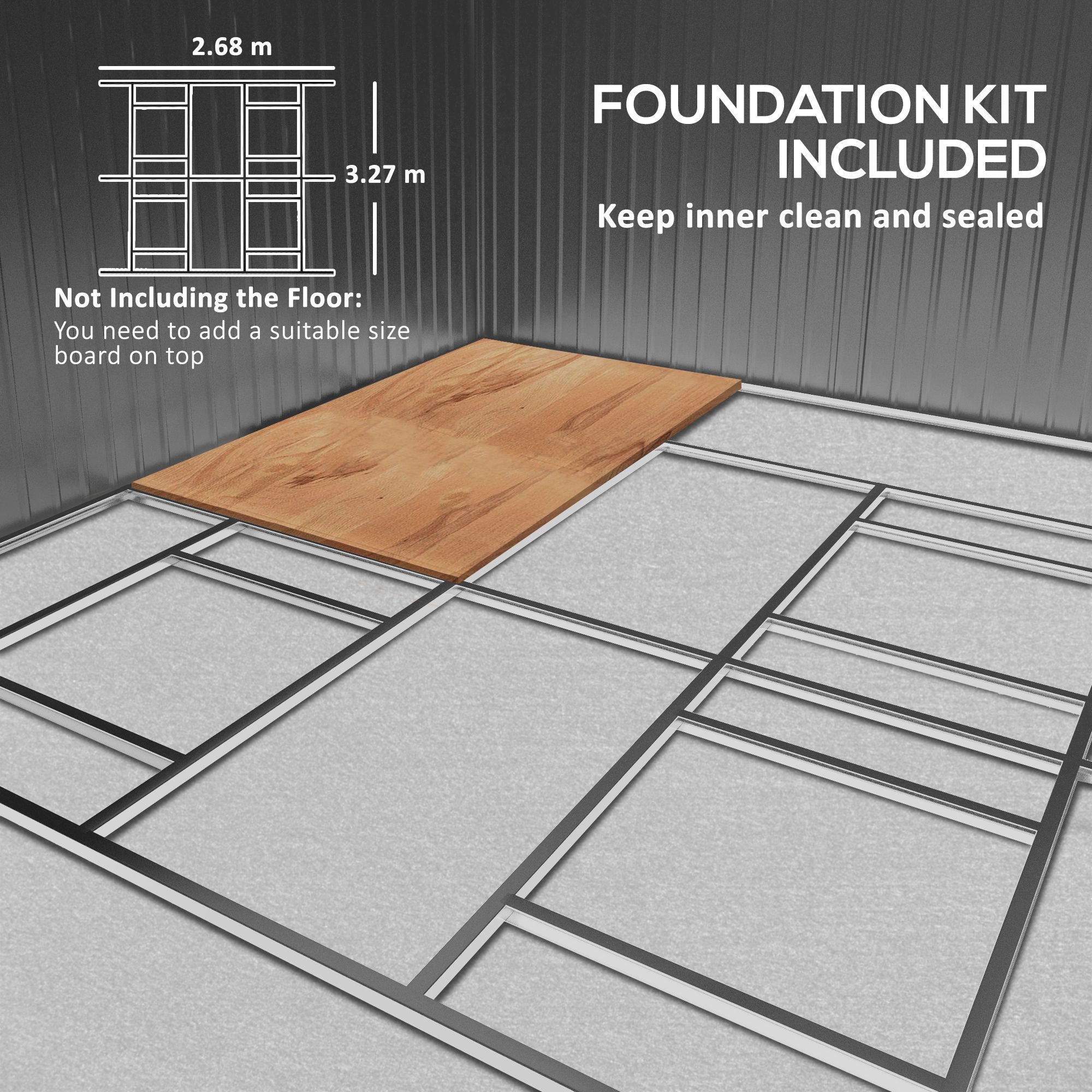 - Floor foundation included, with all parts pre-cut and pre-drilled