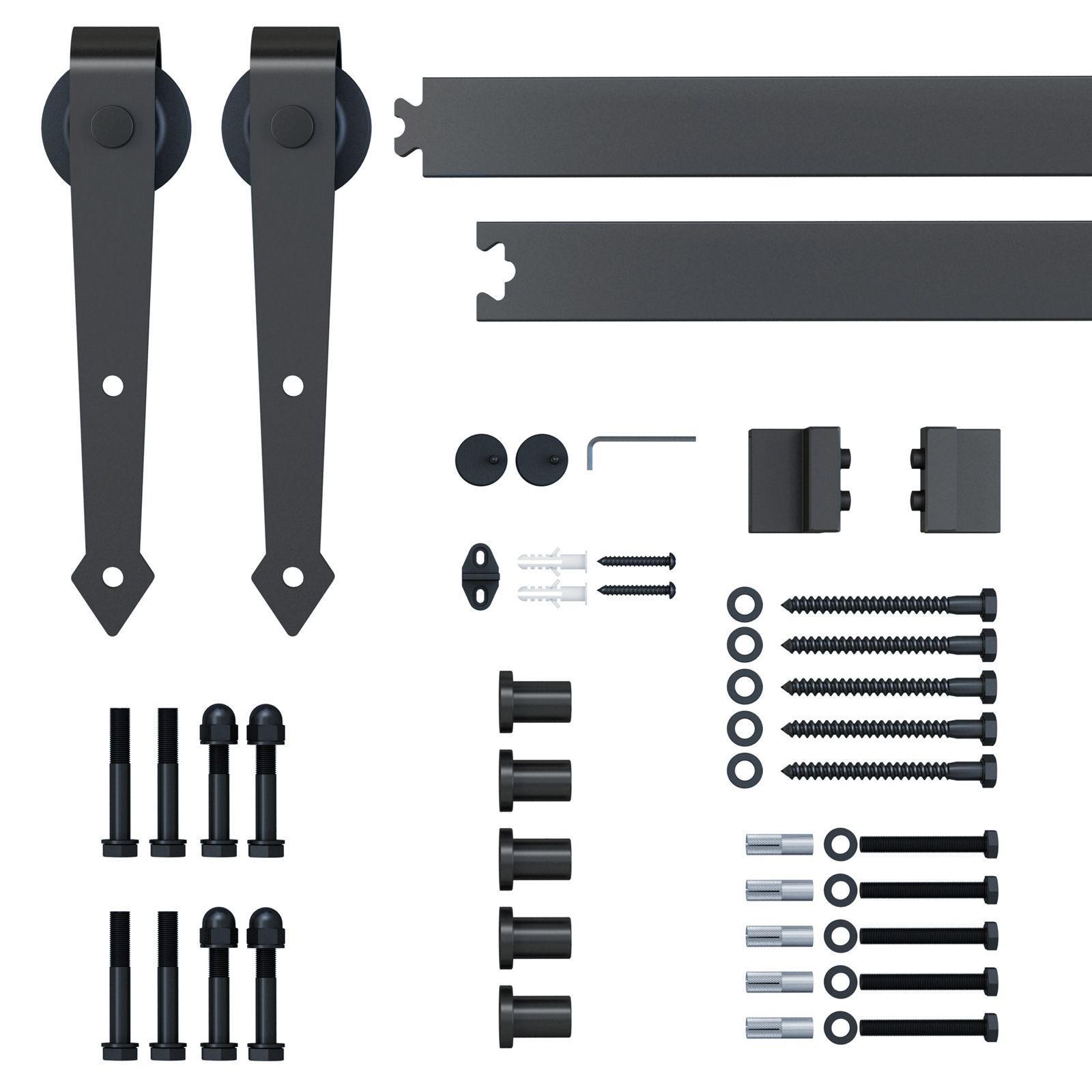 This track system is a perfect way to create a barn style look to your home. Made from carbon steel construction with brown powder coat finish which makes it very sturdy and durable, and can hold up to 100kg in weight. It comes with all the necessary accessories for easy installation and can be assembled in minutes. With space saving in mind, this would give you the extra space due to sliding motion and no door opening space taken away. Give your home the updated style and elegance with this practical system. Door NOT included.