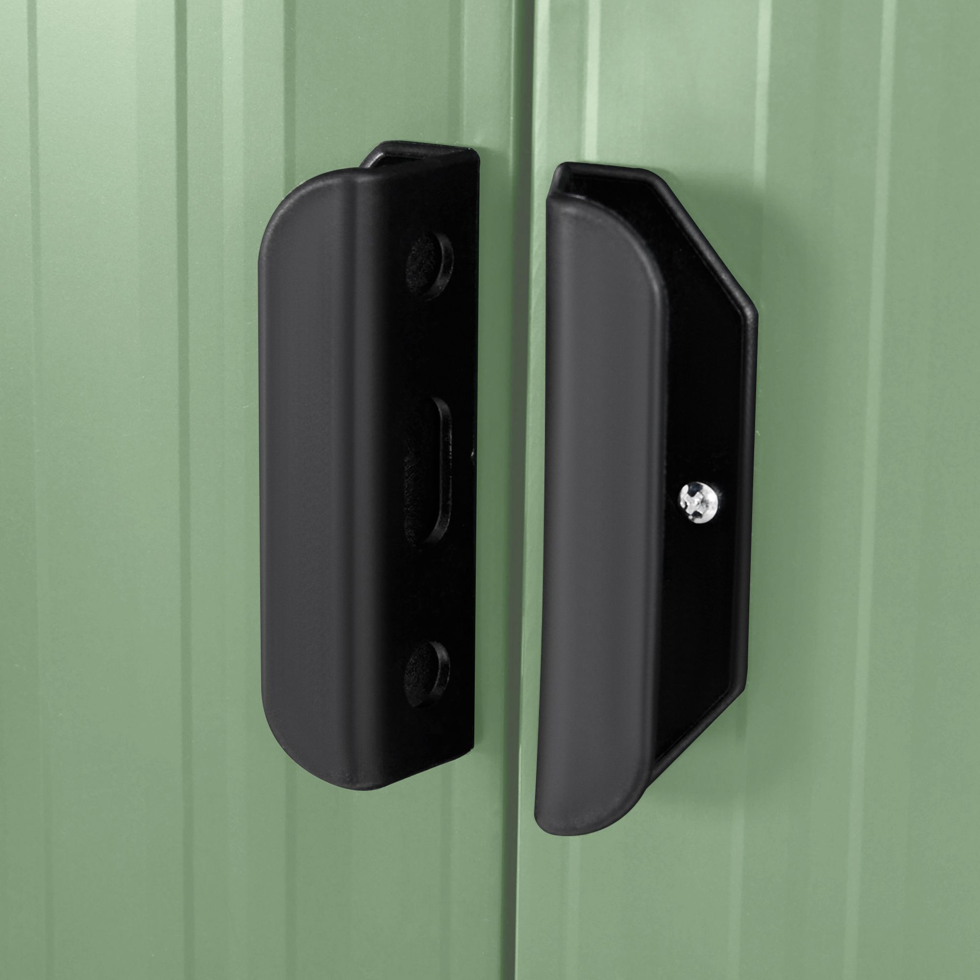 Keep your garden equipment and outdoor essentials clean and in order with this fantastic outdoor shed from. Made from quality steel for enduring reliability. With a sloped roof sitting on the top to help prevent water accumulation and rust forming, this garden storage box is finished with a floor foundation, so you have everything you need to install this piece. The perfect home for all your outdoor tools and gear.
