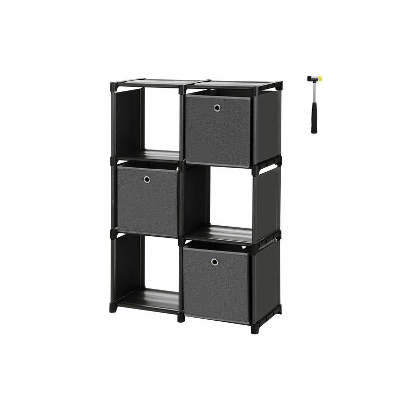 Description:Limited on space or simply have too much stuff to know what to do with? 6-Cube storage shelves are completed with 6 perfectly fitted non-woven fabric boxes to fix the situation once and for all. The creative DIY design makes it versatile as:Bookshelf4 bottom bars and fabric as the base of each shelf offers strong support for heavy items and is even sturdy enough to fill it all by books, storage boxes can be used separately and folded for flat storage.Shoe RackThe open design is perfect for holding shoes at the entryway, also a great choice for a small house or apartment. Box up knick-knacks in the fabric boxes.Toy OrganiserFix it to the wall for safety after assembled; keep your little ones' toys and trinkets in the boxes, so they can fetch what they want easily and learn how to tidy up their treasures all by themselves.Clothes ShelfAs a practical piece in the bedroom or closet, it helps you keep sweater, pants or socks organised so getting ready is streamlined. No need to haul bulky furniture if you are moving to a new home.Do not hesitate to get this product with its infinite possibilities.