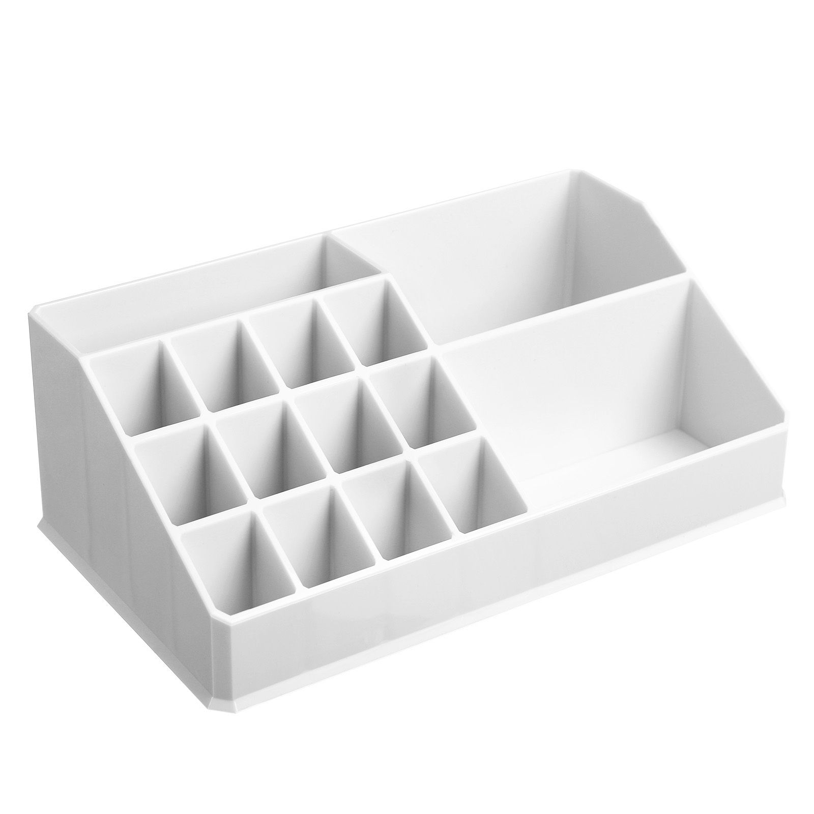 Overall size: 24 x 13.5 x 30 cm (W x D x H)Size of the first layer: 22.5 x 13 x 8 cm (W x D x H)Size of 12 compartments in three rows (front to back): 2.5 x 2.5 x 3/ 4/ 5.5/ 6 cm (W x D x H)Size of the big compartment on the left:10 x 3.3 x 7.5 cm (W x D