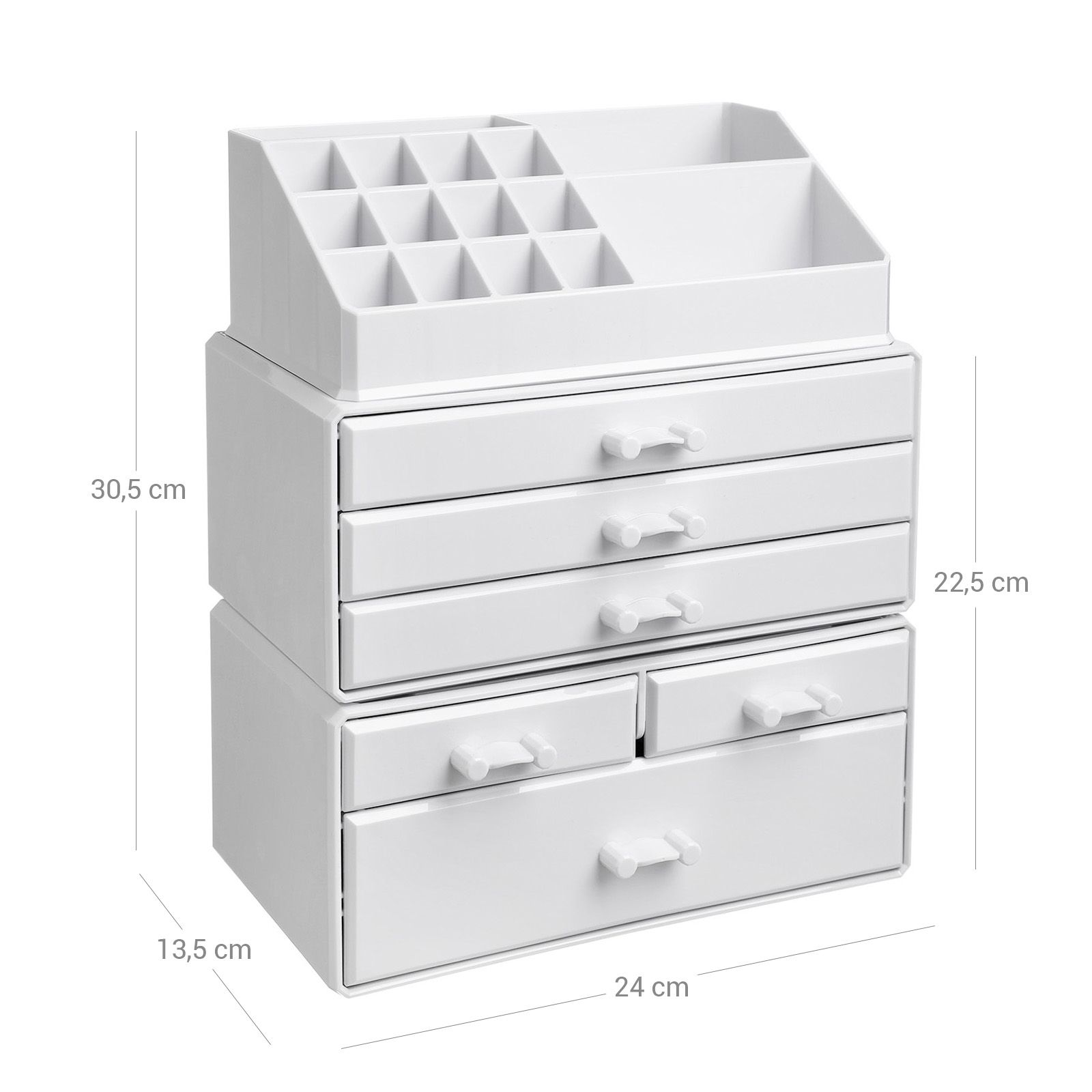 Keep your cosmetics neatly organized with this 6-drawer makeup organizer. Crafted with durability in mind, it offers ample space for storing various beauty essentials. The six drawers provide convenient storage for makeup brushes, skincare products, and more, while the sleek design adds a touch of elegance to your vanity. Elevate your beauty routine with this practical and stylish organizer, perfect for any makeup enthusiast.