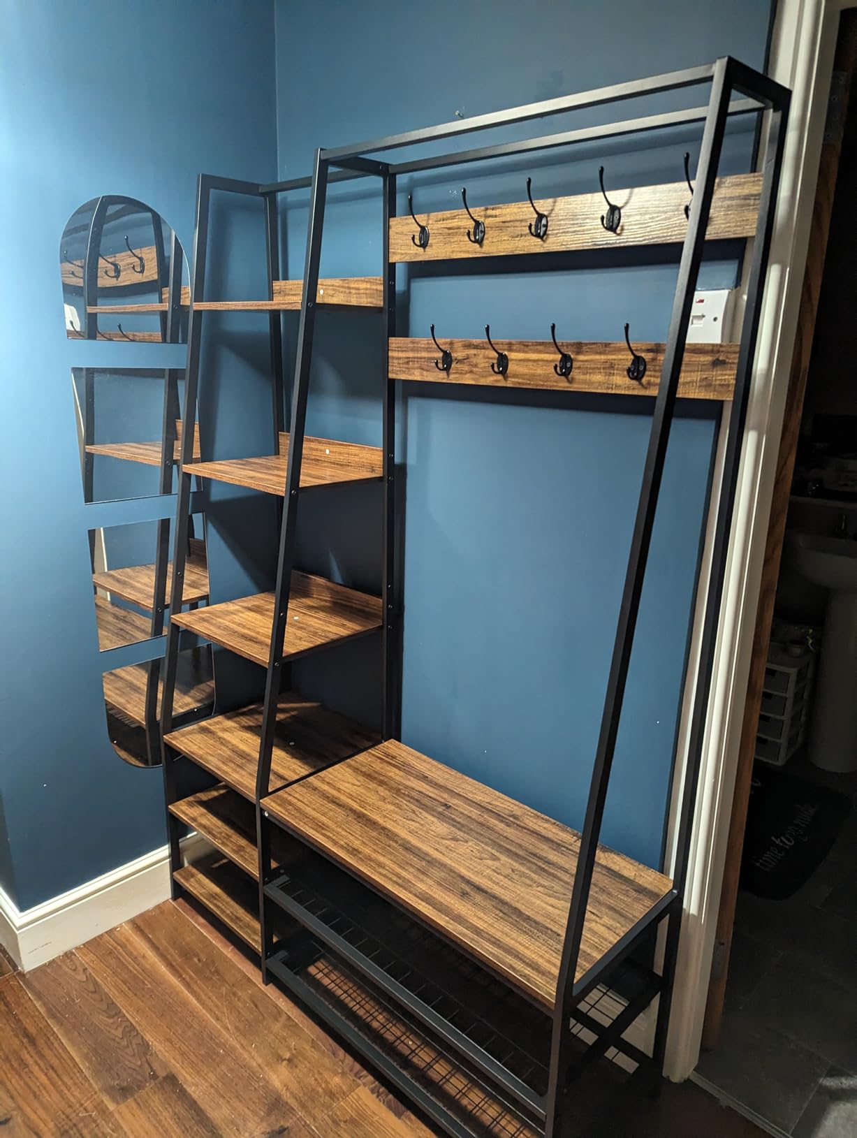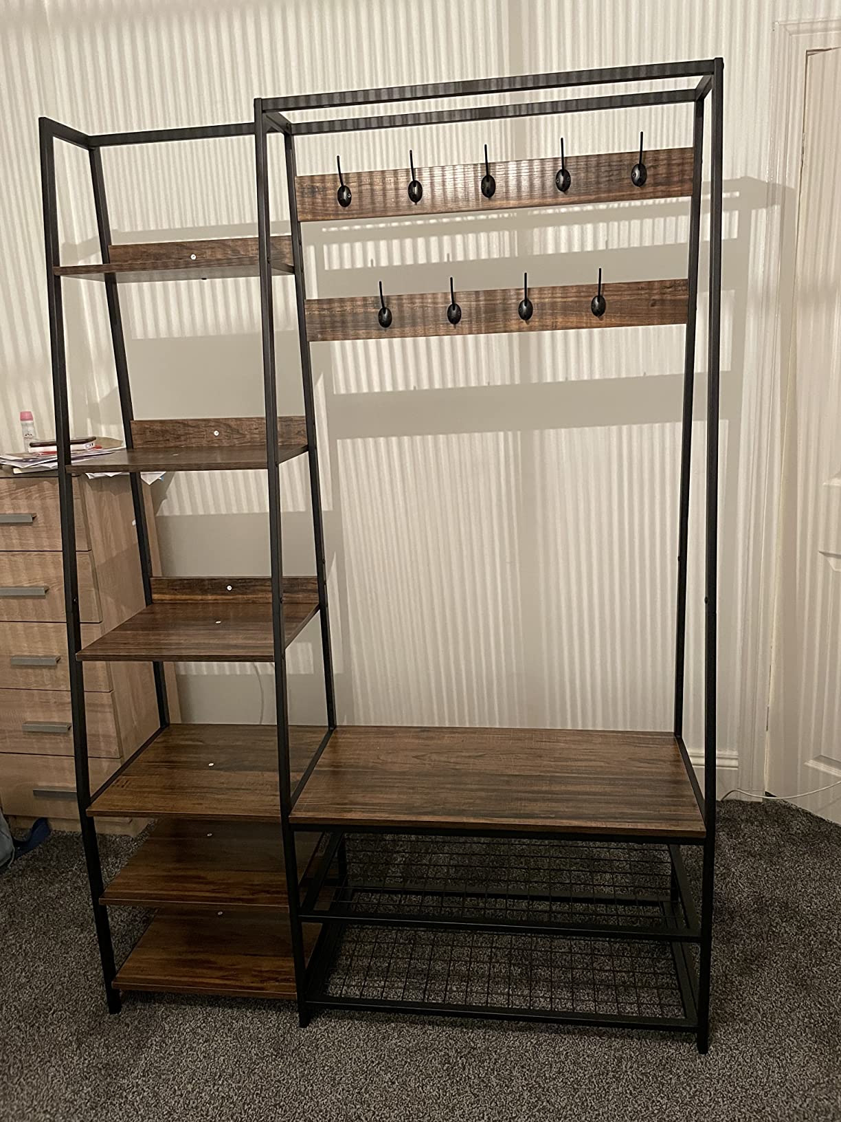 6-in-1 Freestanding Garment Coat Rack with 9 Hooks and 6 Storage Shelves