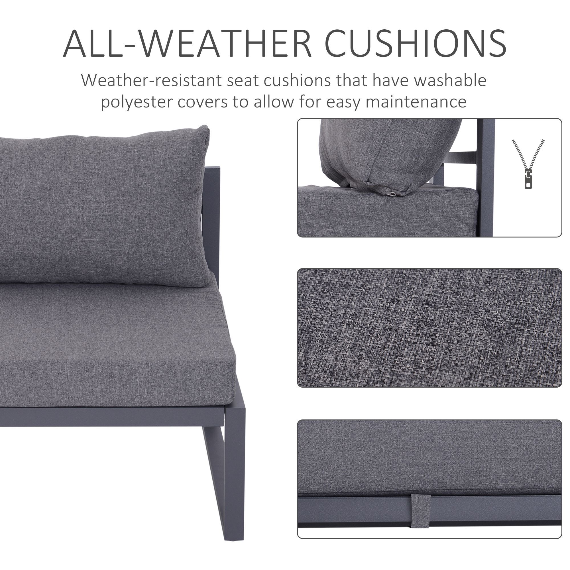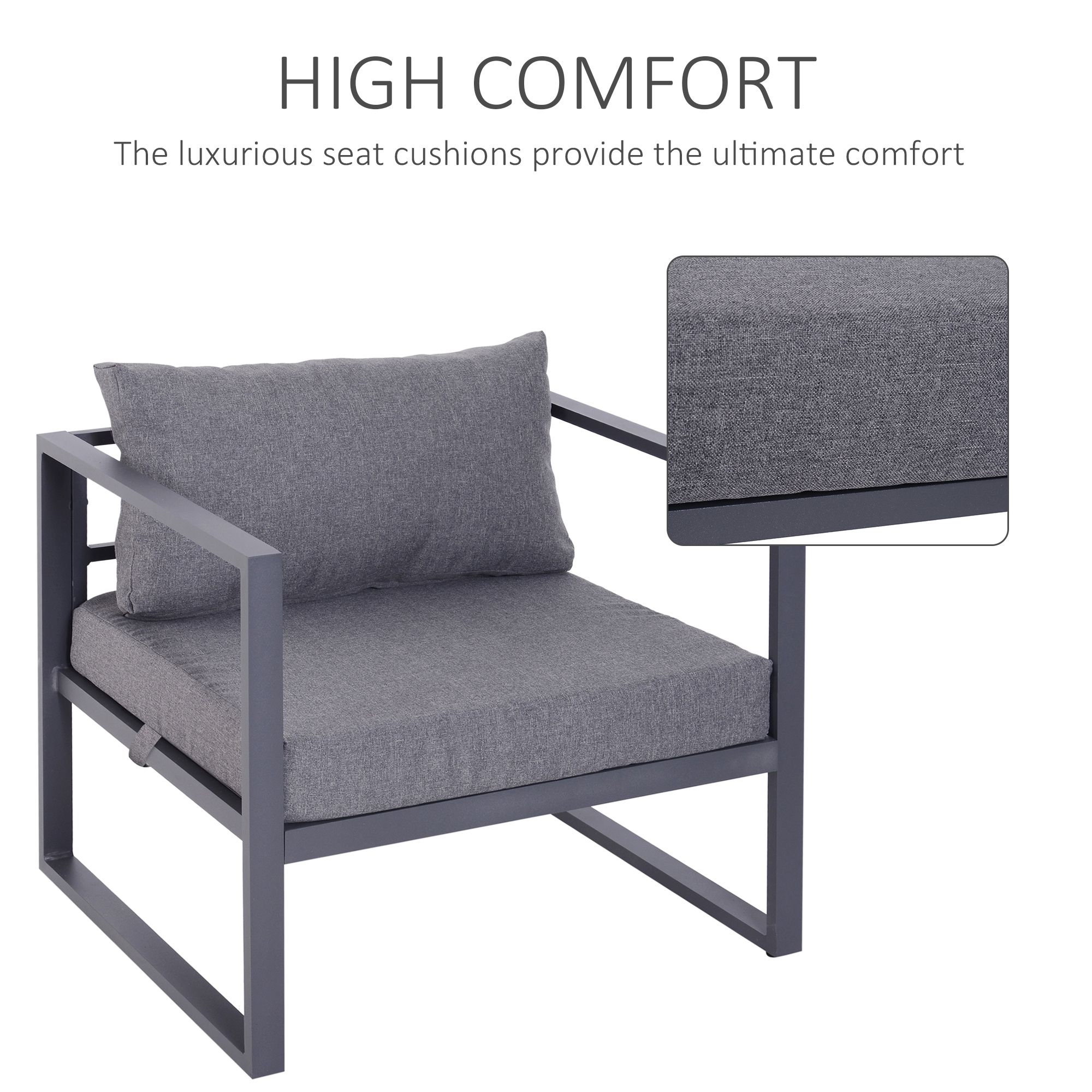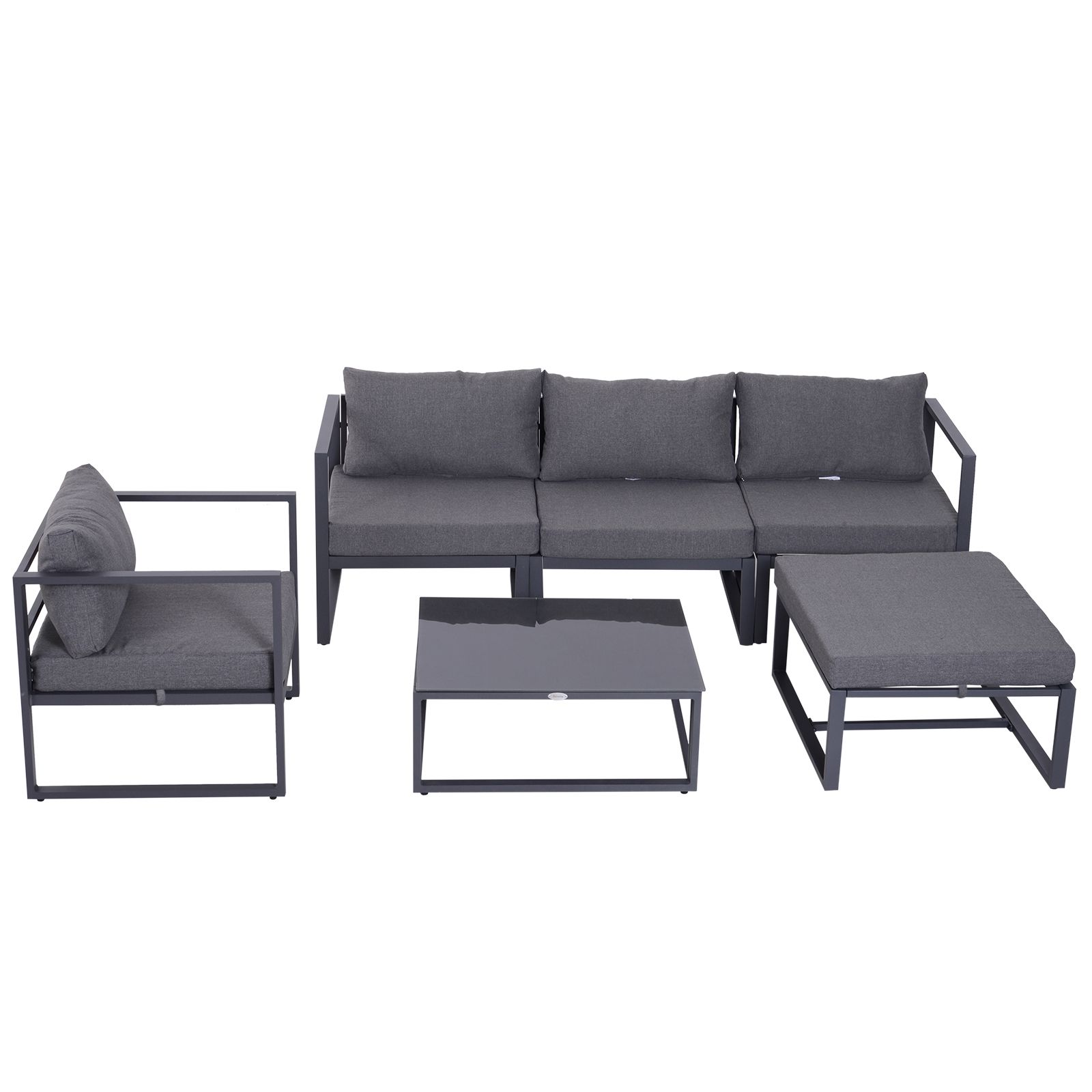 6 PCs Outdoor Indoor Sectional Sofa Set Thick Padded Cushions Aluminium Frame 5 Seaters 1 Coffee Table Footrest Grey