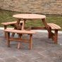 This Outsuny wooden bench kit is a great addition to any outdoor setting. Perfect for the garden or patio with the ability to accommodate 6 peaple easily. Designed in a circular shape with a table and 3 benches providing ample room to place drinks and food. The table also has a hole to add a parasol umbrella to keep you out of the sun. The unit is made from fir wood offering strength and stability with long term use. It is ideal for the summer and will match any outdoor setting.