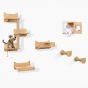 6 Pieces Cat Wall Furniture Set with Food Water Bowl and 3-step Cat Tree-Natural