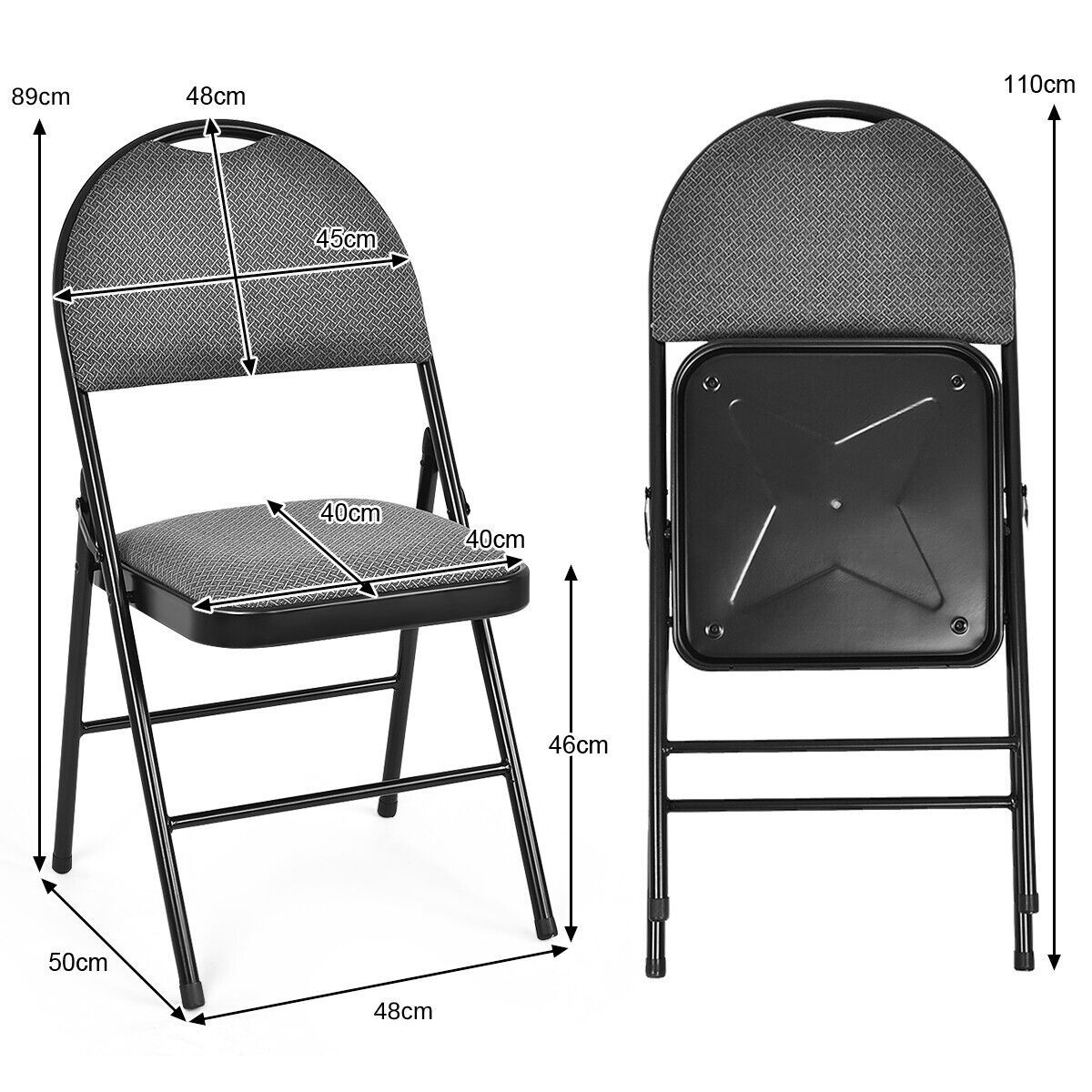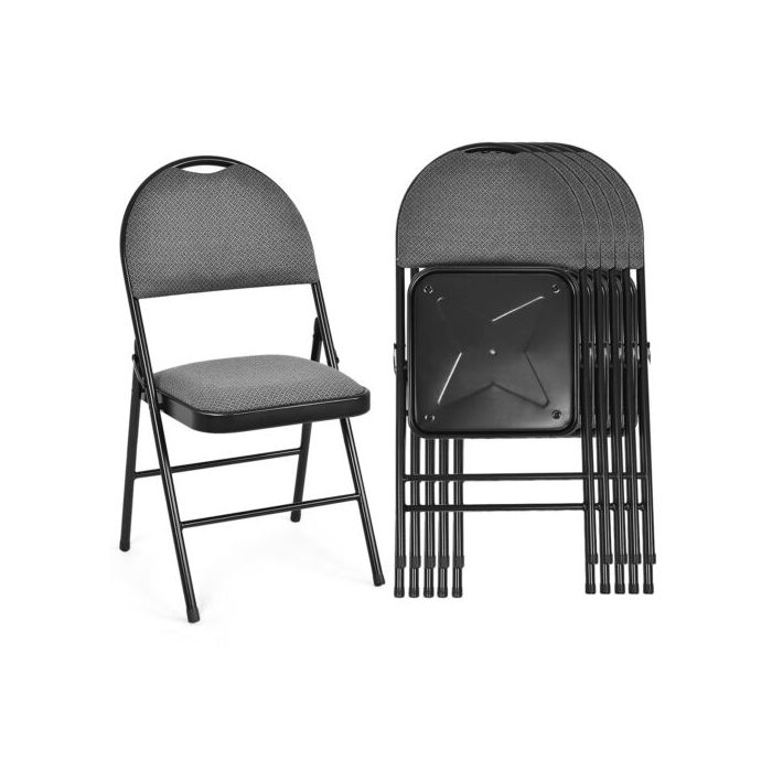 6 Pieces Folding Chairs Set with Handle Hole and Portable Backrest-Grey