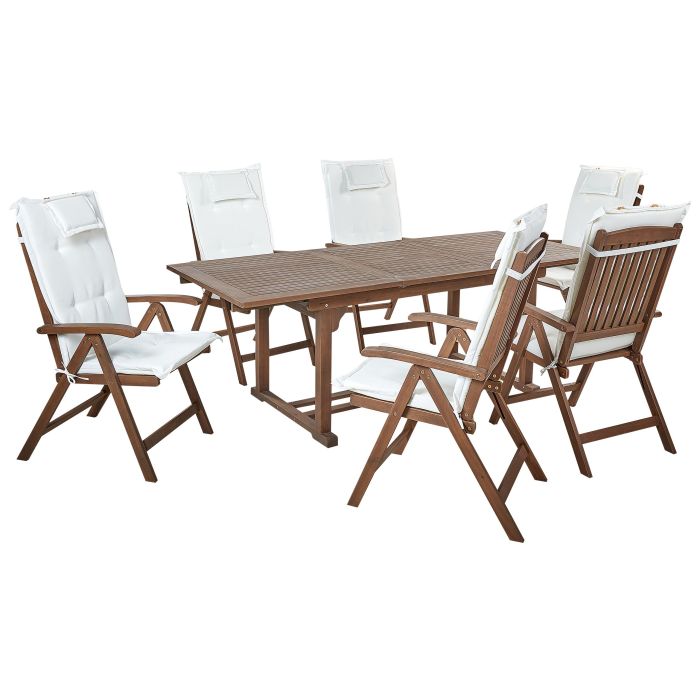 6 Seater Acacia Wood Garden Dining Set with Off-White Cushions AMANTEA