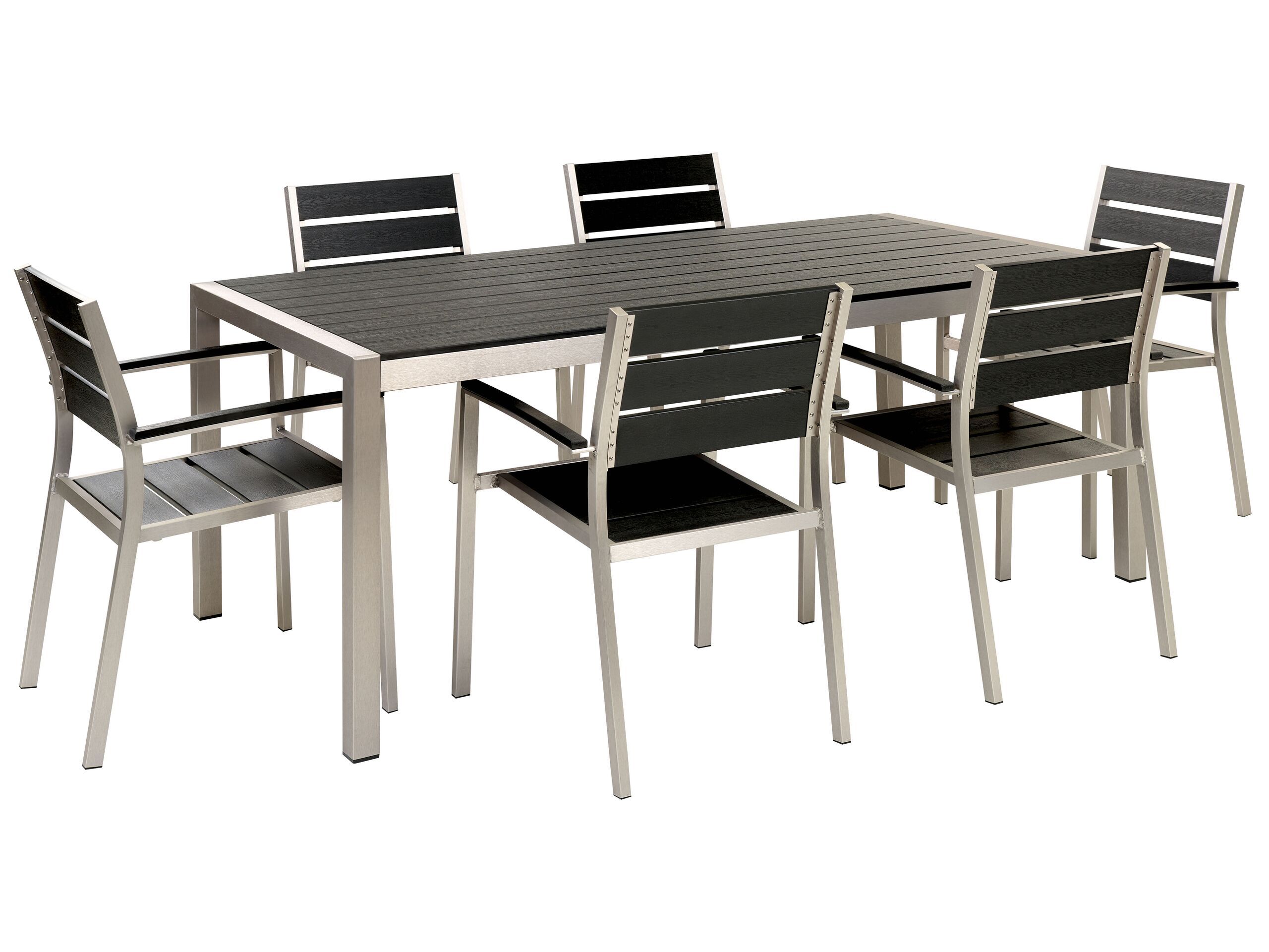 6 Seater Aluminium Garden Dining Set Black and Silver VERNIO