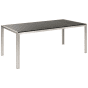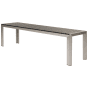 This modern outdoor dining set makes your garden or patio more elegant and stylish. Made of sturdy materials, including an aluminium frame, the set provides resistance against diverse weather conditions. Wide seats ensure enough space for all your guests and family. The dining set looks best when paired with any contemporary or modern garden accessories. Details: Color: Black, Silver. Main material: Plastic Wood. Additional material: Aluminium. Weight: 44 Capacity: 4 - 6 People Assembly: Partial Assembly Required Overall Dimensions: 180x90x75 Table Dimensions: 180x90x75 Bench Dimensions: 165x40x45 Seat Height: 45