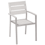 The elegant and stylish outdoor dining set is a great addition to your garden or patio. The set consists of a dining table and chairs, made of solid aluminium frame and synthetic wood, which ensures effortless maintenance and weather resistance. The chairs come with supporting armrests, providing the highest levels of comfort and are also stackable, making them easy to store. The minimalistic design makes this set universal and matches any modern, outdoor décor. Details: Color: White, Silver. Main material: Plastic Wood. Additional material: Aluminium. Weight: 65 Capacity: 6 People Assembly: Partial Assembly Required Overall Dimensions: 180x90x76 Table Dimensions: 180x90x76 Chair Dimensions: 54x57x88 Seat Height: 45