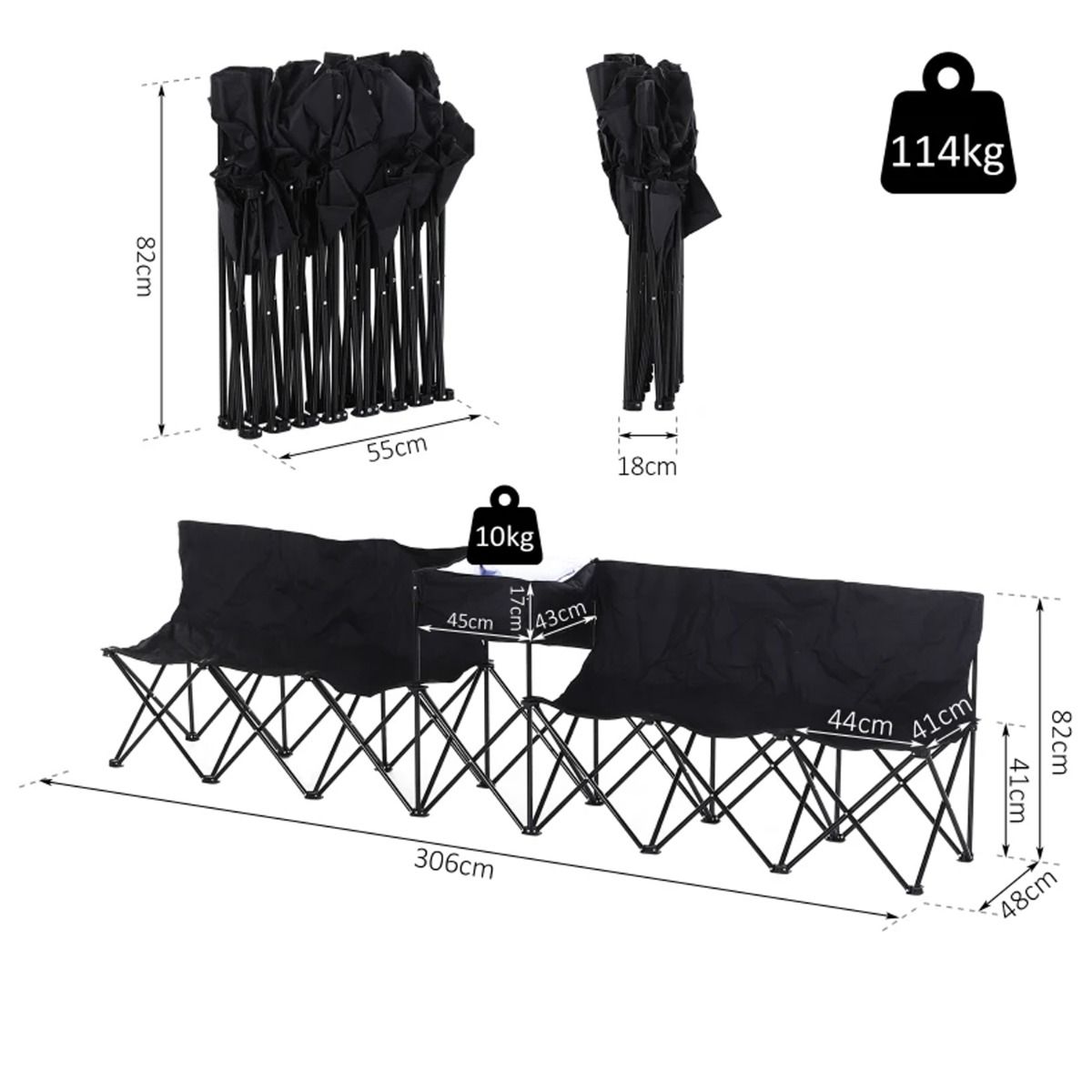 - Strong steel frame offers durable support for long lasting use with 114kg of support per seat
