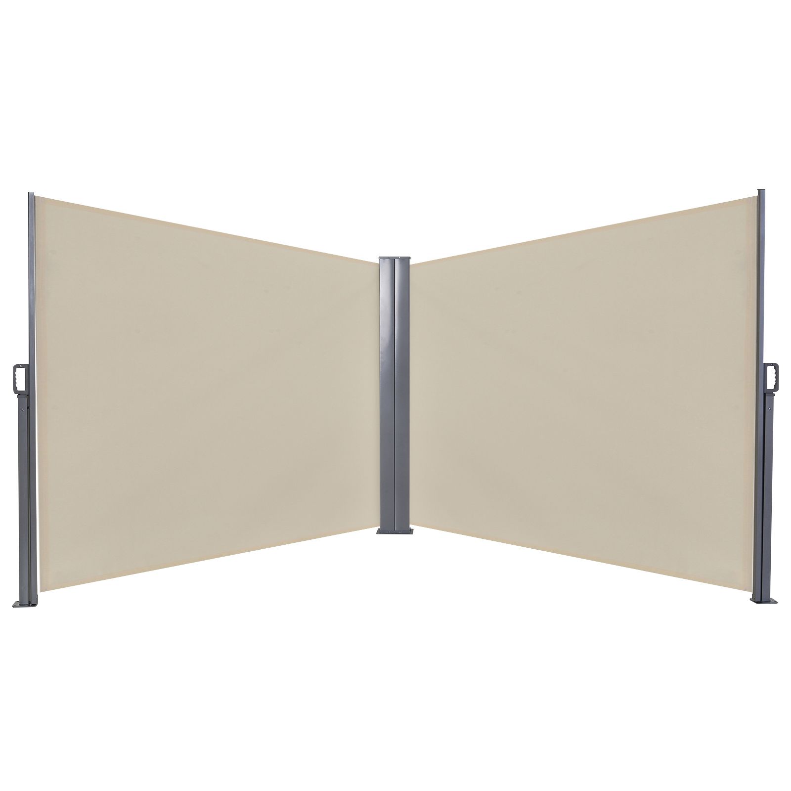 6 x 1.6 M Double Canopy Pull-Out Side Awning Sun Rain Outdoor Protection w/ Steel Frame Retractable Garden Privacy Home Commercial Beige
