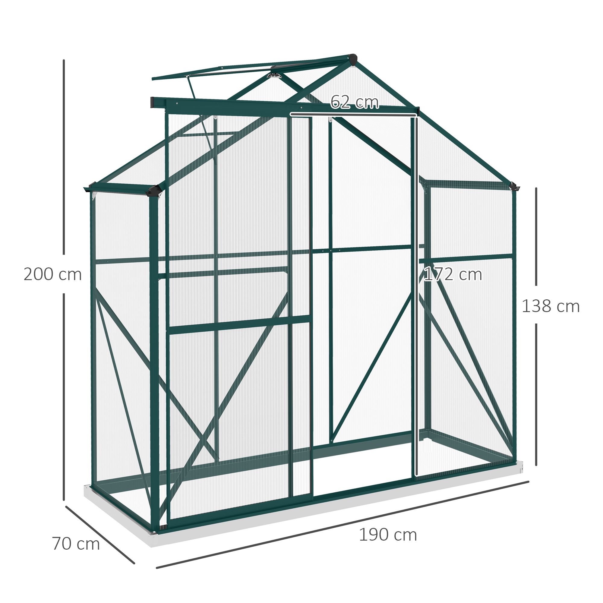 Polycarbonate Greenhouse Walk-In with Rain Gutter Sliding Door - Green