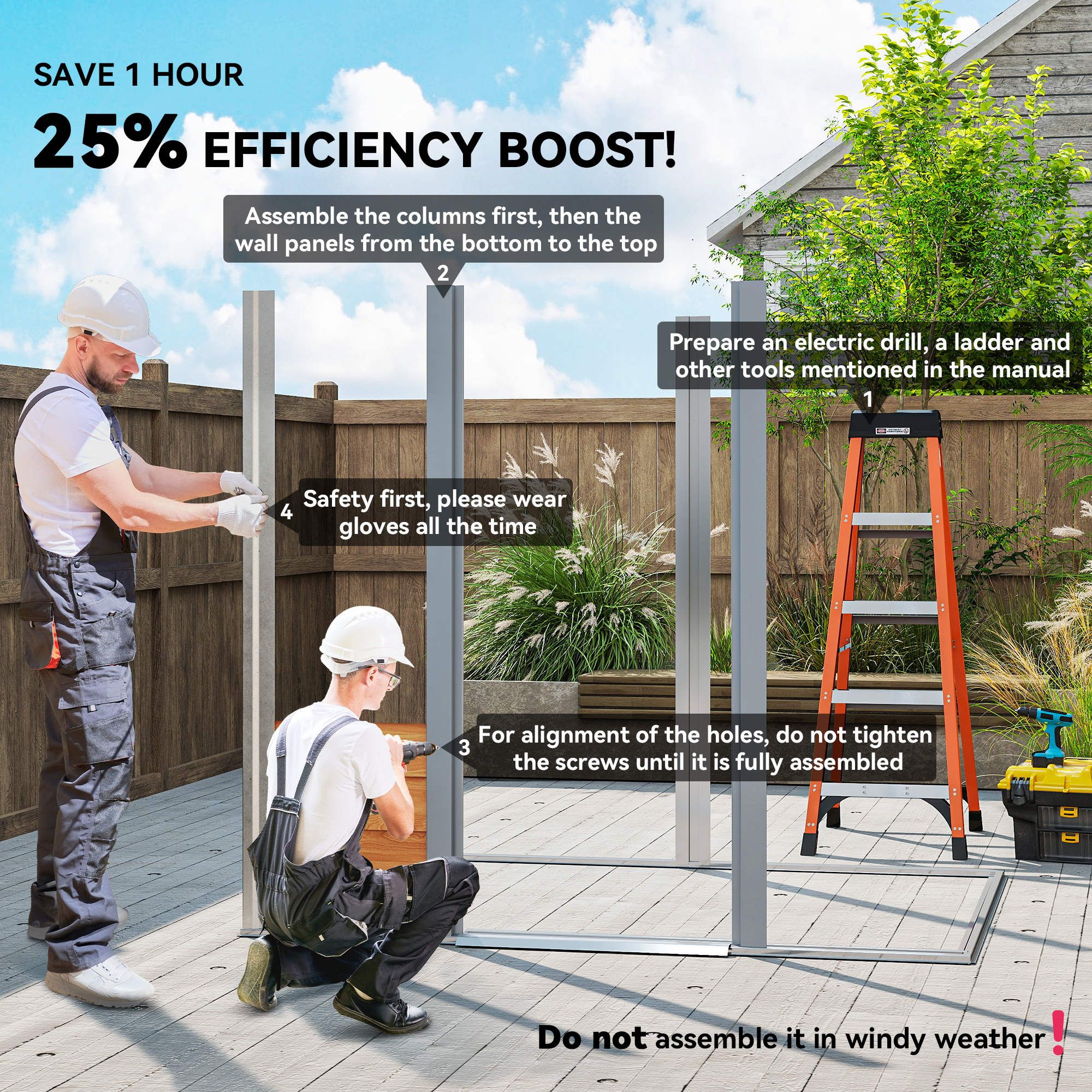 - Foundation allows the shed sitting evenly on the floor. (Flat surface Required)