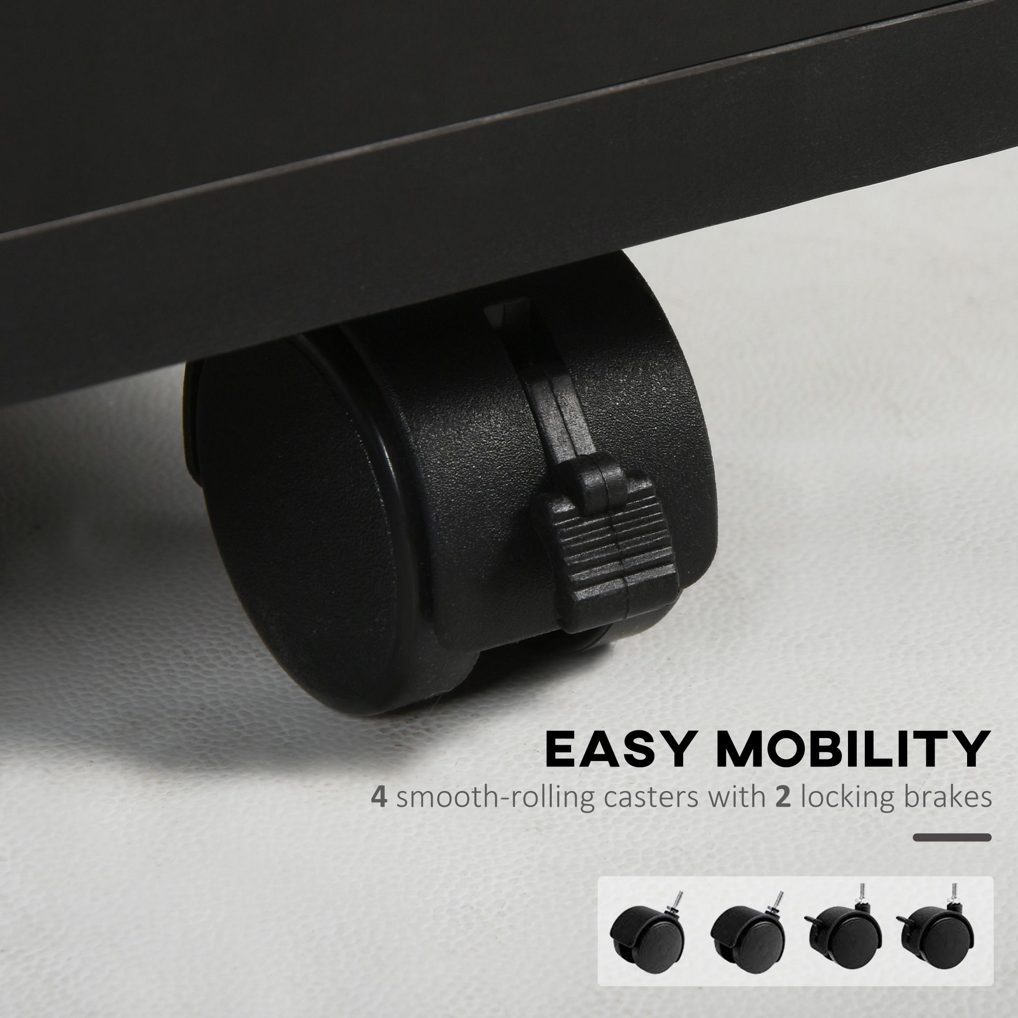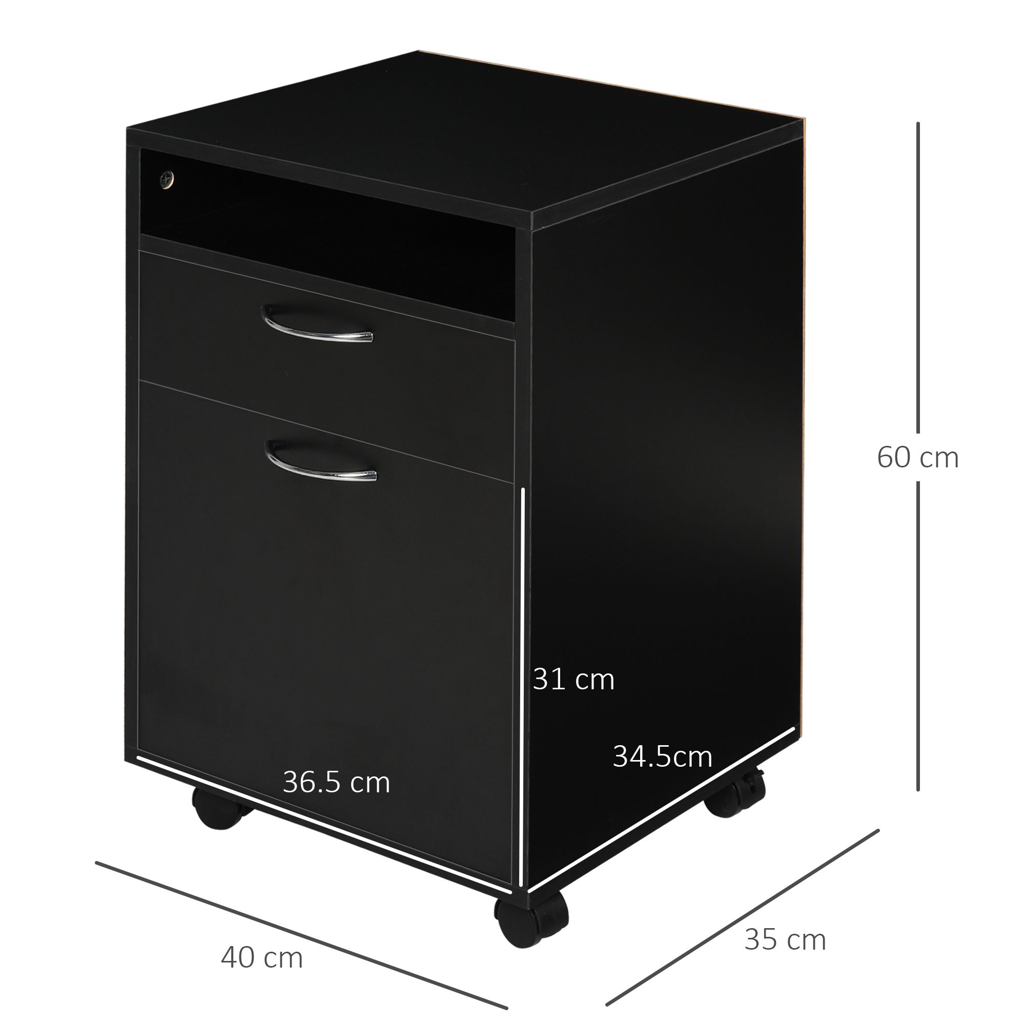 60cm Storage Cabinet w/ Drawer Open Shelf Metal Handles 4 Wheels Office Home Organiser Mobile Printer Black