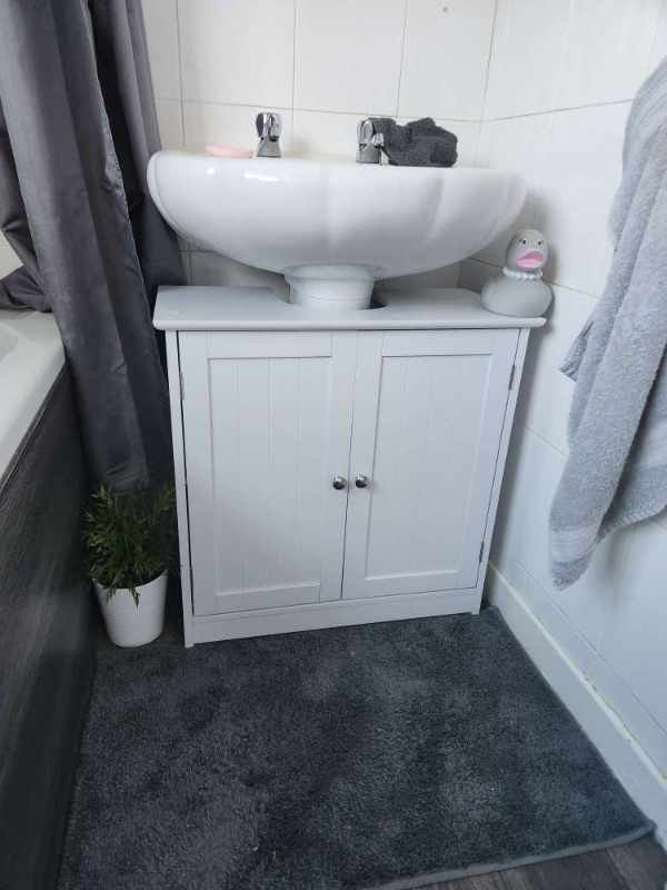 Opt for a traditional aesthetic when choosing under-sink storage with this cabinet from. Its clean colourway pairs effortlessly with the carved indents and sleek handles. Made from MDF to be solid for daily use, with a smooth paint coating all over for light protection. Inside features an adjustable shelf for organizing and separating toiletries when needed. The 'U' shaped cut out slots into the sink pipe with ease to bring space into your home which you never thought possible before.
