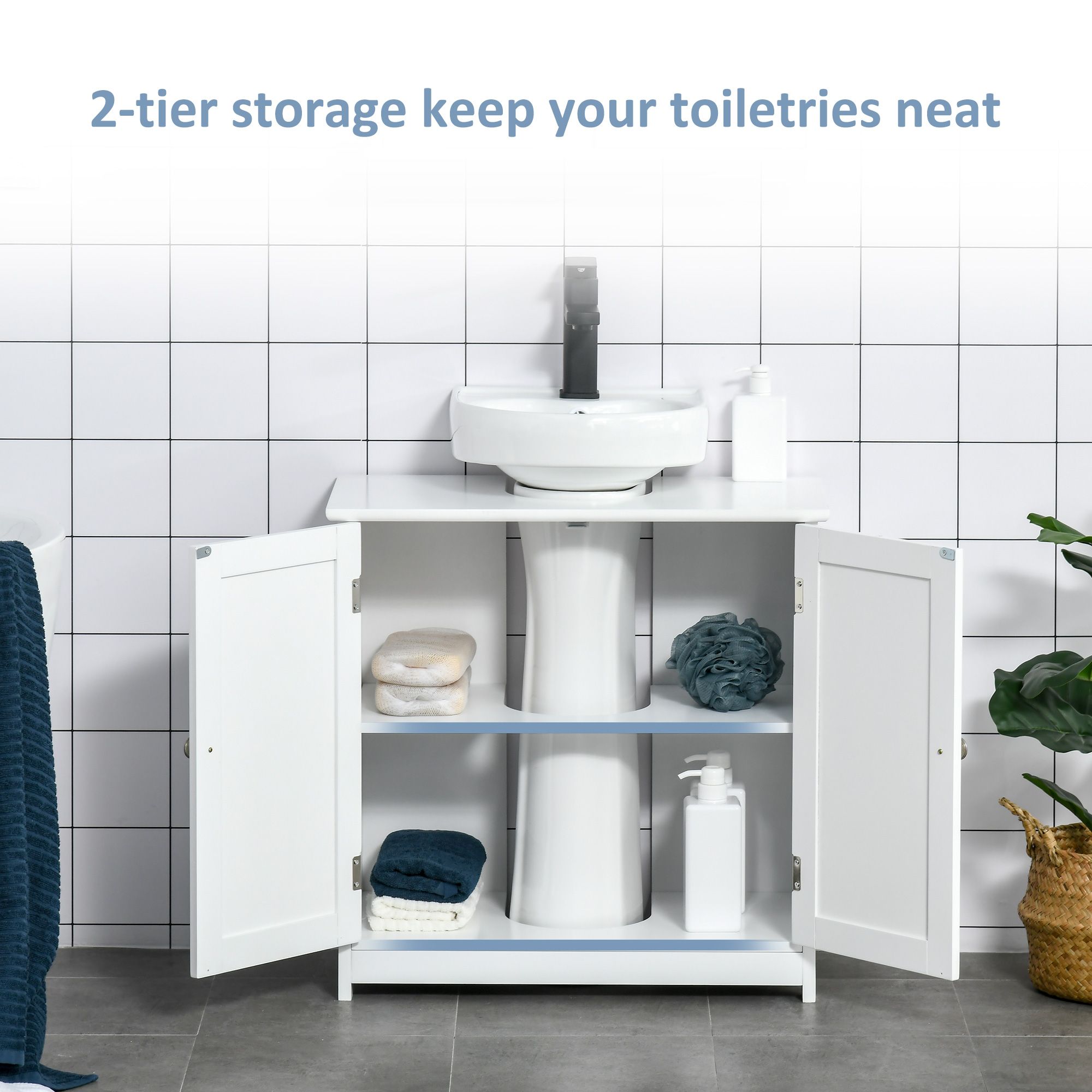 60x60cm Under-Sink Storage Cabinet w/ Adjustable Shelf Handles Drain Hole Bathroom Cabinet Space Saver Organizer White