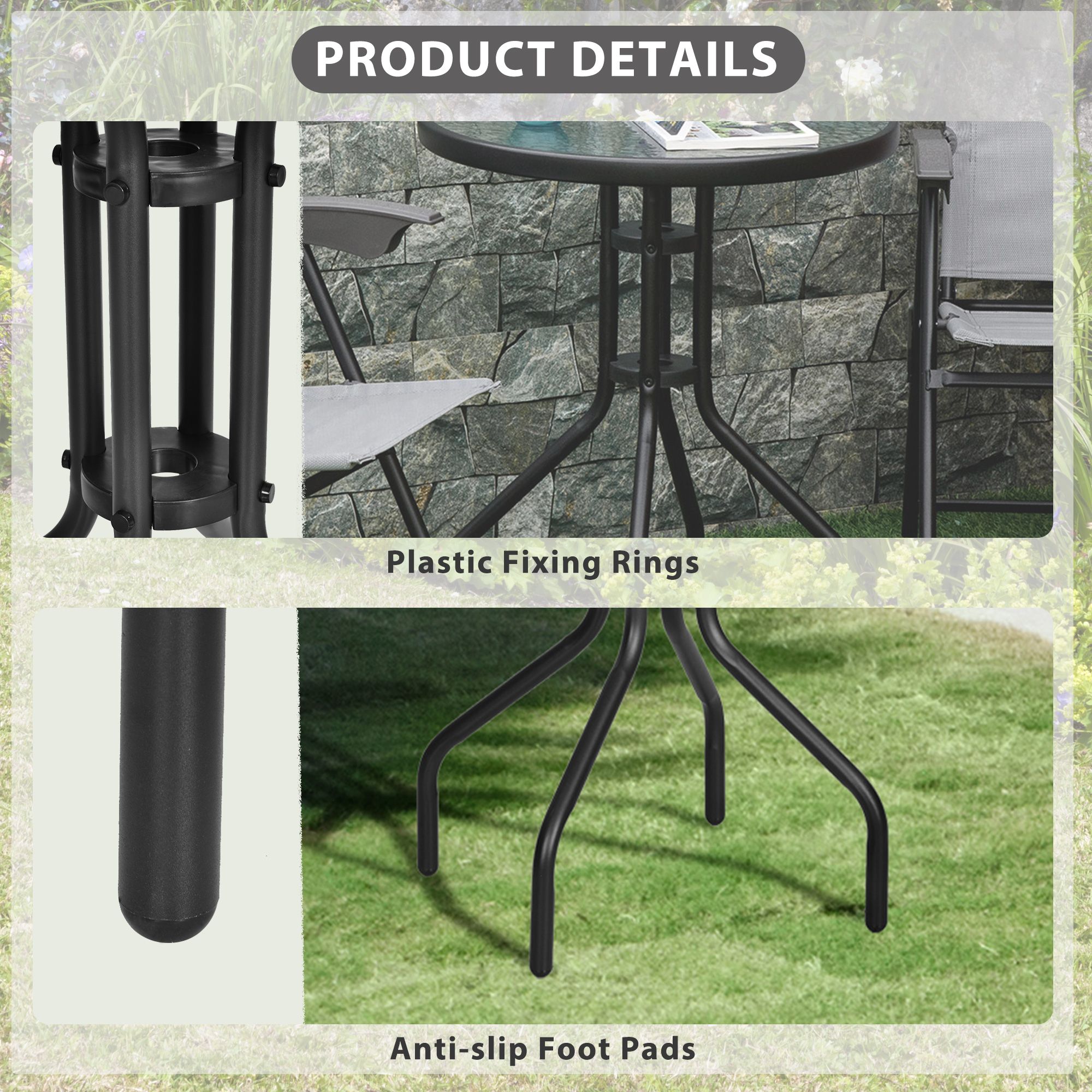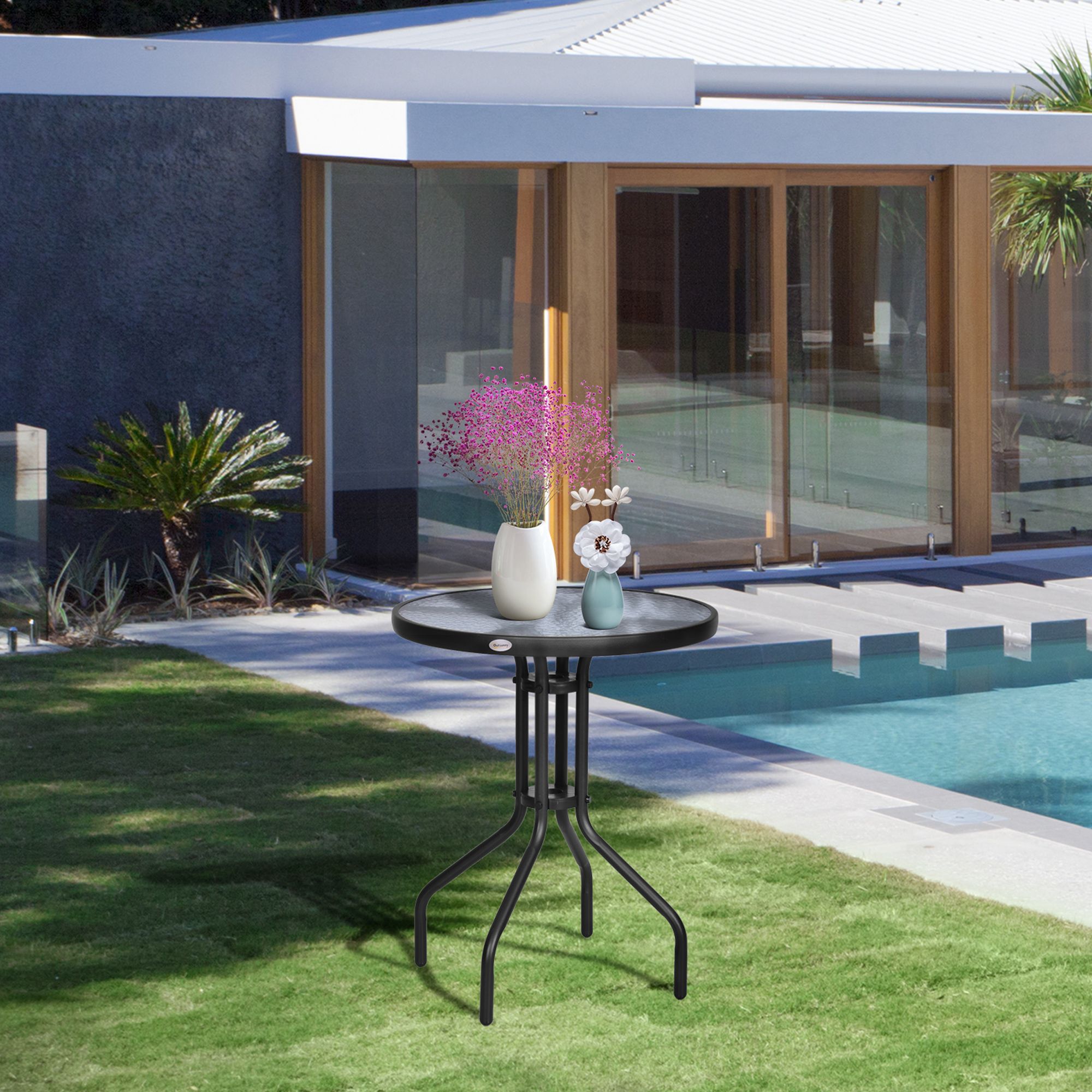 This garden table is a great addition to your outdoor living space. Made from a metal frame with a tempered glass top. There is a plastic collar to ensure the table stays stable and firm throughout the year. The table is lightweight making it easier to move if required, a great addition to any outdoor living space.