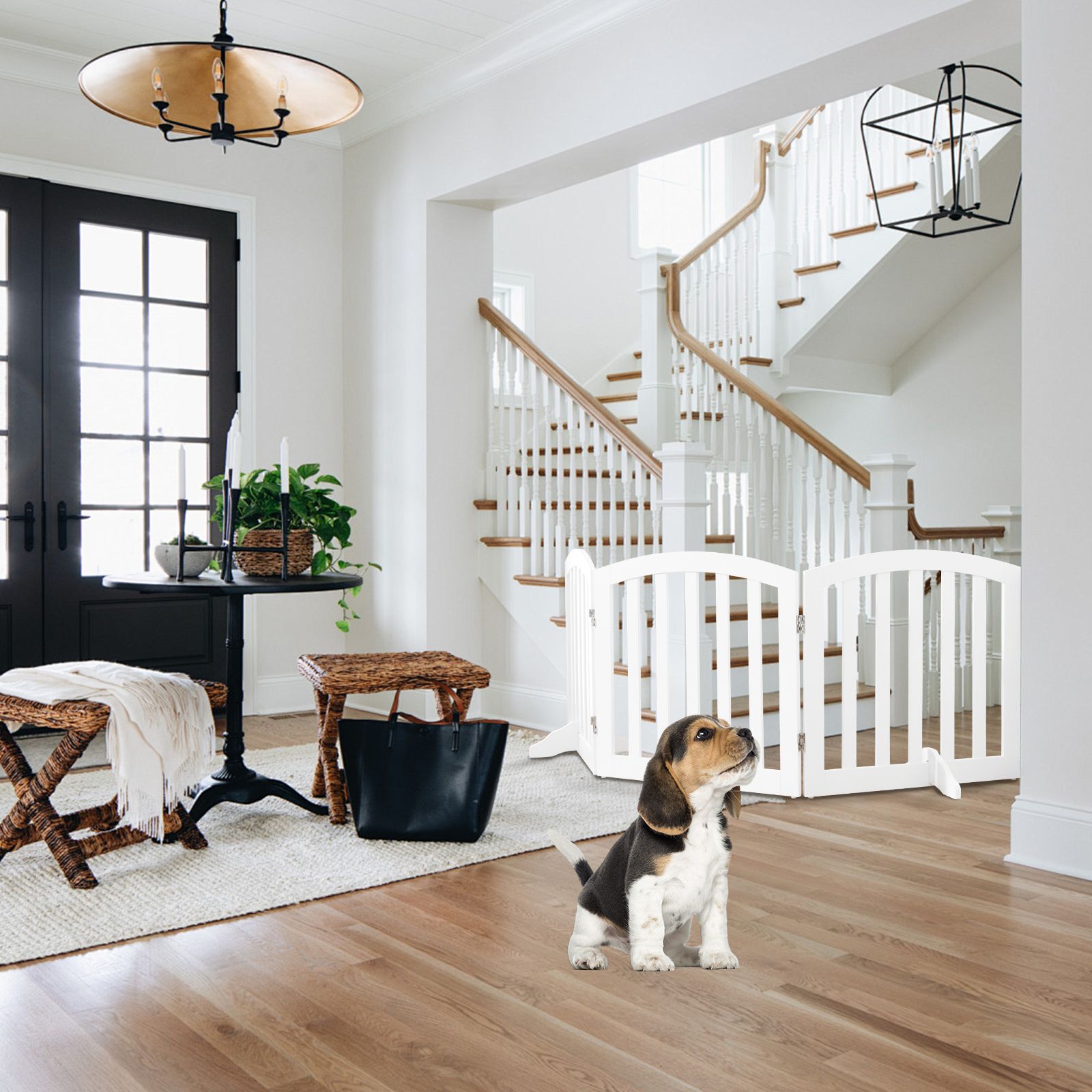 61 cm Height Safety Fence with 2 PCS Support Feet for Dog Cat Baby-White