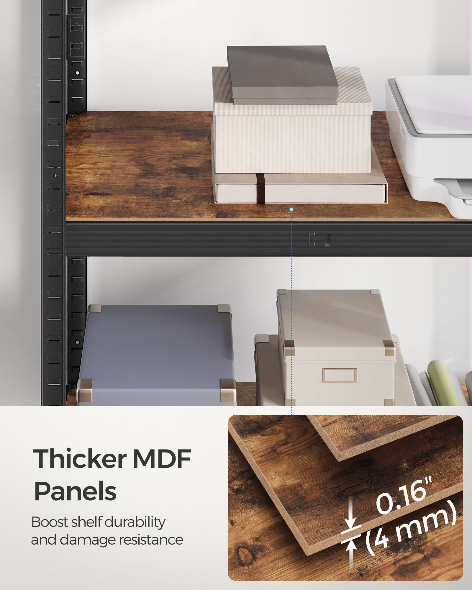 Top Reasons the Shelving Unit Is the One:A steel frame and sturdy engineered wood shelves offer firm support.The stiffeners on the legs and crossbars on each tier enhance the stability.The powder coating is rust-resistant and won't be damaged easily.Each tier of this rack can hold up to 130 kg.Each shelf is height-adjustable; also, the rack can be split into 2 units.An anti-tip kit is included to ensure safe use.The charming look makes it a nice add-on to your living room, kitchen, balcony, and office.
