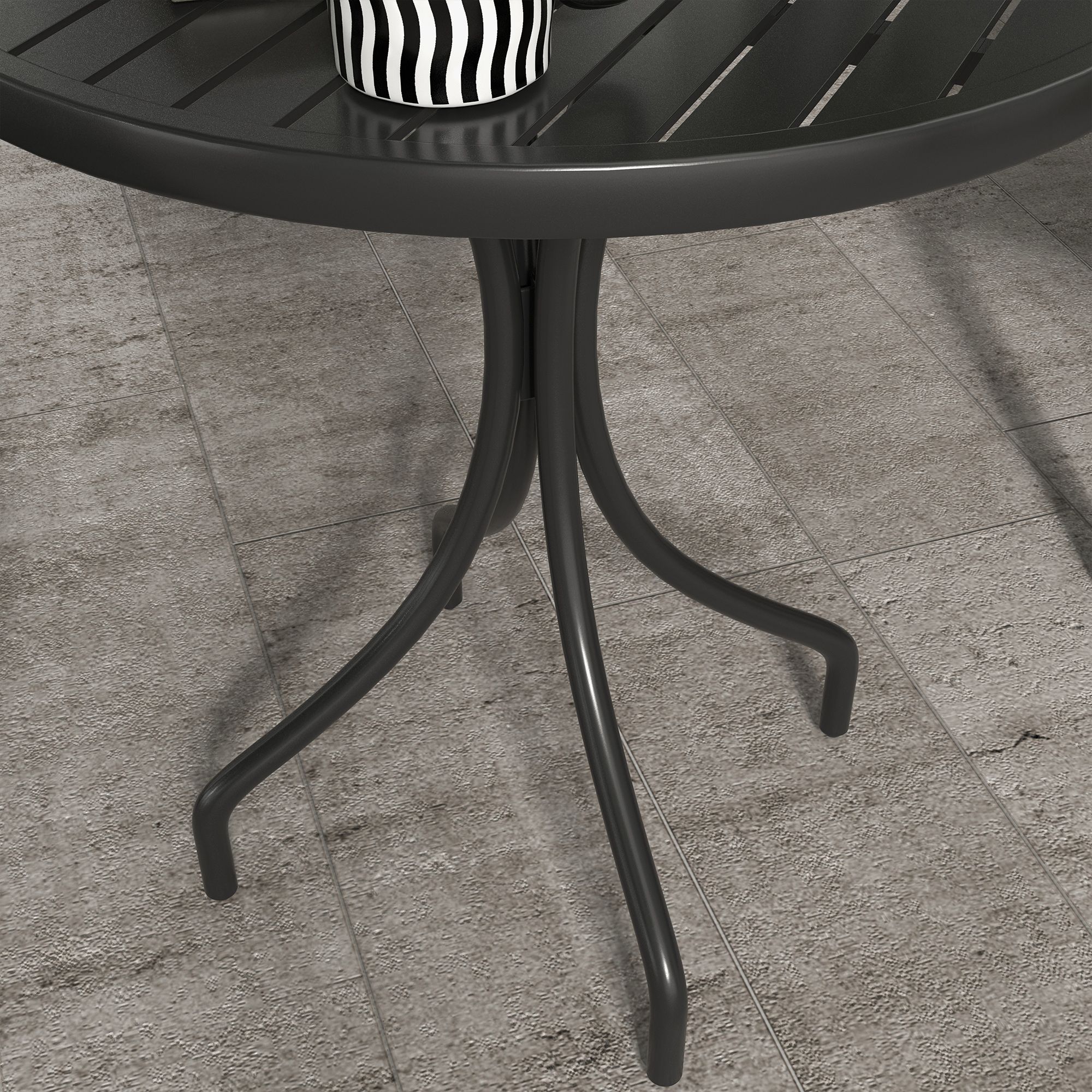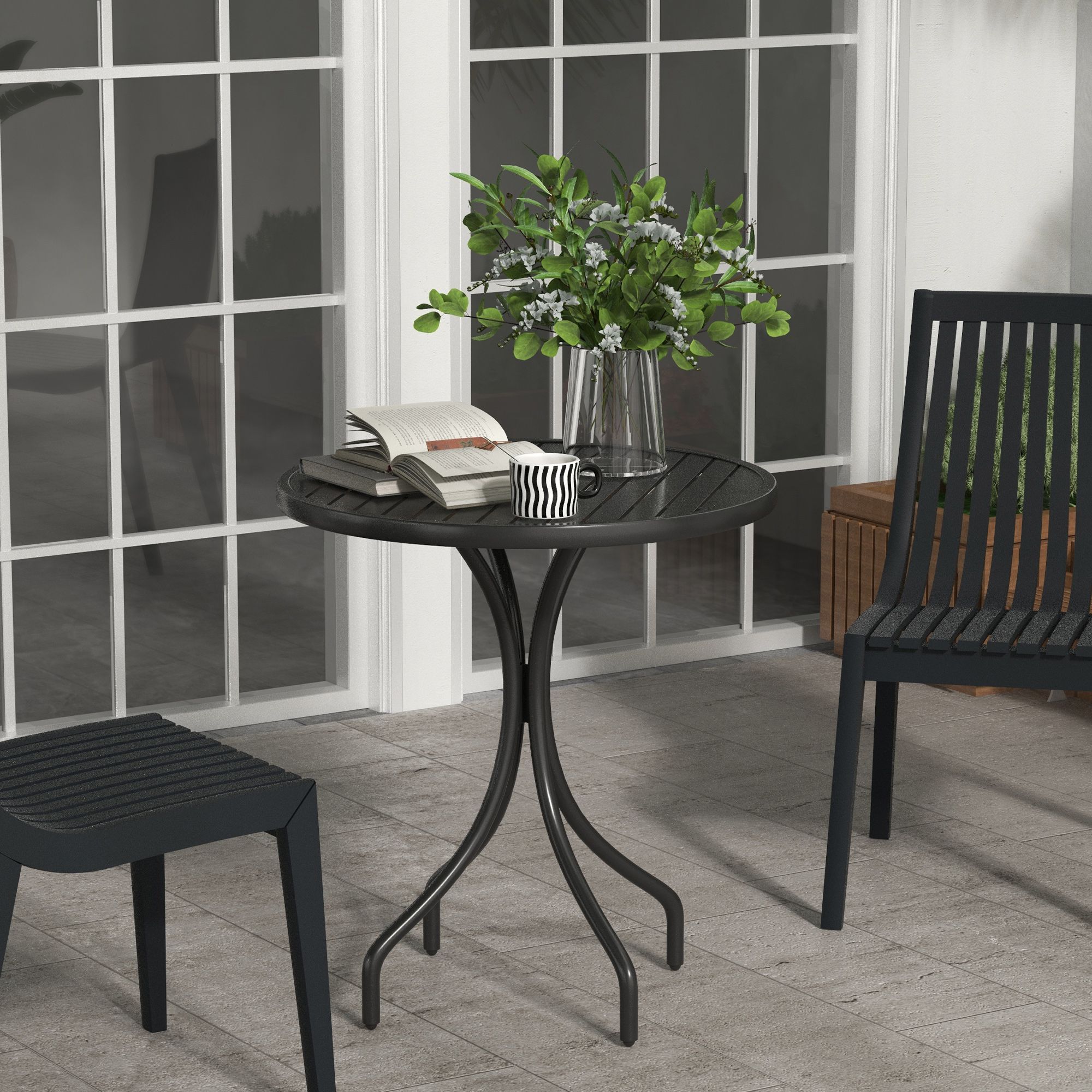66cm Patio Table, Round Garden Table, Outdoor Side Table with Steel Frame and Slat Tabletop, Black