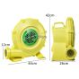 This powerful inflatable bouncer blower provides full and fast inflation. High-quality metal impellers greatly reduce its noise in operation, working well with outdoor inflatable bounce houses, bouncy castles, water slides, inflatable obstacle courses, inflatable jumpers and other inflatable bouncers. If you are looking for a blower like this, do not hesitate to place an order! ● Upgrade Safety Air Blower: The electric air blower has a clear cover on the switch, which is safe enough for you to turn on/off in case it gets wet. There are 2 wire meshes covering 2 vents, which can protect the hands from getting cut when on working status. The portable air blower pump uses a particular built-in bearing, which performs better than other plastic ones; the air blower pump engine runs more smoothly. ● Wide Usage to Meet Various Needs: We combine the yellow and the green together for the first time, which had an unexpected effect. You can find that the bright colours are lively and fashionable. Quickly filling and greatly air flowing, this air blower pump fan works well with outdoor bounce houses, water slides, obstacle courses, air sofas and other suitable inflatable bouncers. ● Easy Operation: The air blower pump has 13 feet long power cord, easy-handhold grip design, which makes it convenient to inflate products and be a time saver for any occasion. It is also an air blower which can be fixed, as there are four holes in the base of the blower. You can find some screws to hold the blower according to your needs, which is good for stability. ● Silent Mode: This air blower pump uses high-quality metal impellers, which greatly reduces its noise in operation; This air blower pump will bring your life a double advantage; This impeller and built-in bearing will greatly reduce noise spreading; While getting rid of the loud sound, this material of impeller will not increase the weight. ● Compact and Portable Construction: This high pressure air blower pump with a handle on the top is easy and convenient to transport or carry; The small size of this electric pump blower will take less space in your room, which is portable operation by one person independently.