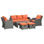 6pc Outdoor Rattan Wicker Furniture Set with 3-Seat Sofa, 2 Single Sofas, 2 Footstools and Coffee Table - Orange