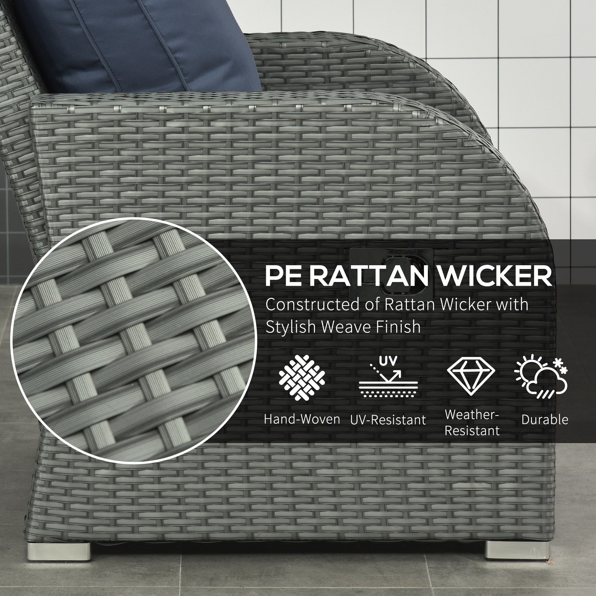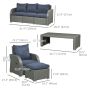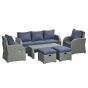 6pc Outdoor Rattan Wicker Furniture Set with 3-Seat Sofa, 2 Single Sofas, 2 Footstools and Coffee Table