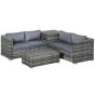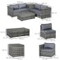 6PC Rattan Corner Sofa Set Wicker 4 Seater Garden Storage Coffee Table Conversation Ottoman Outdoor Weave Furniture w/ Cushion Grey
