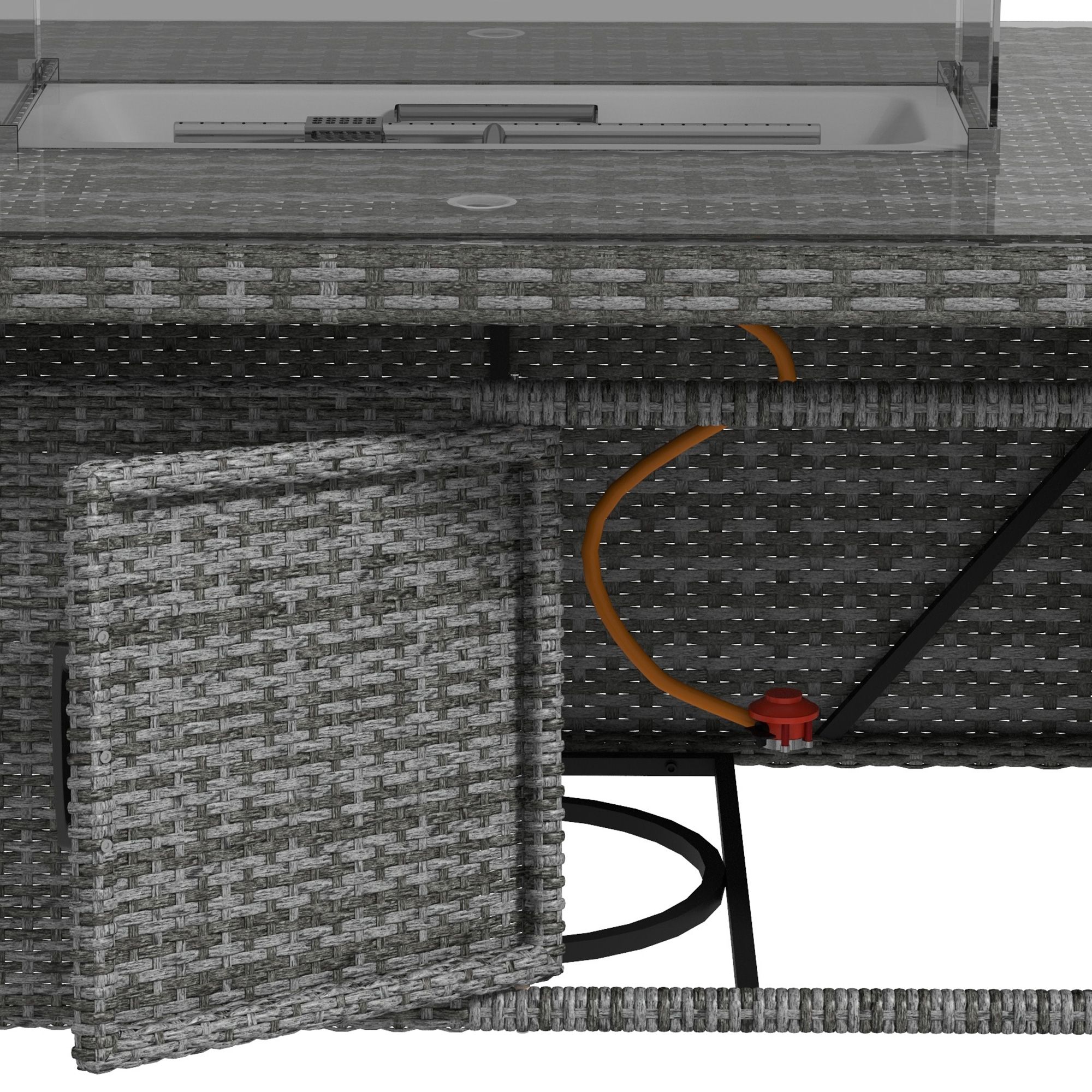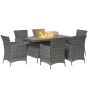 7 Pcs PE Rattan Dining Sets w/ Fire Pit Table, Garden Dining Set w/ Heater Table, Armchairs w/ Cushions, Glass Windscreen, 50,000 BTU, Grey