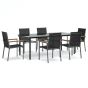 7 Piece Garden Dining Set Black Textilene and Steel