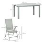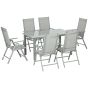 7 Piece Garden Dining Set, Outdoor Table and 6 Folding and Reclining Chairs, Aluminium Frame, Tempered Glass Top Table, Texteline Seats, Grey