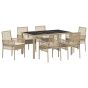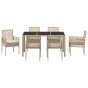 7 Piece Garden Dining Set with Cushions Beige Poly Rattan