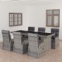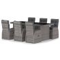 7 Piece Garden Dining Set with Cushions Grey Poly Rattan - vid-3095253