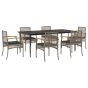 7 Piece Garden Dining Set with Cushions Grey Poly Rattan