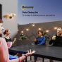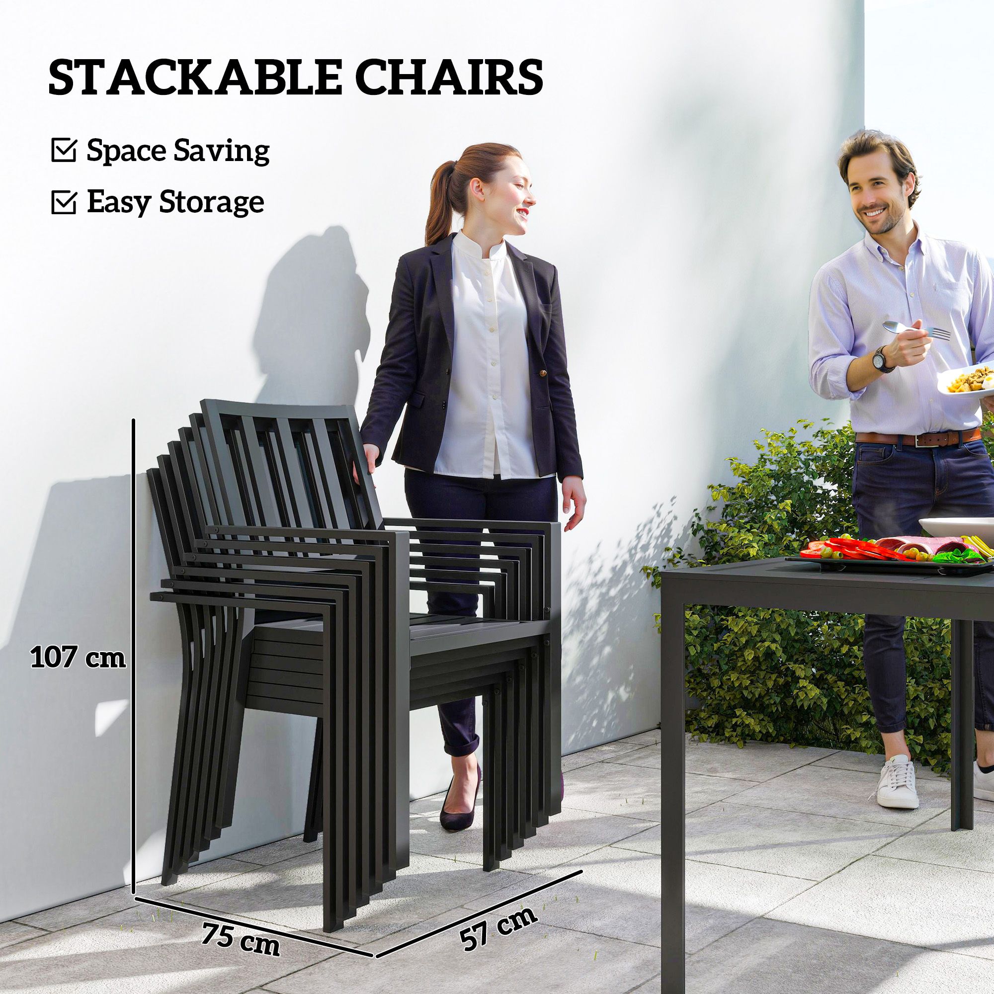 7 Pieces Garden Dining Set, Outdoor Table and 6 Stackable Chairs, Metal Top Table with Umbrella Hole, Black