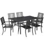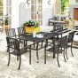7 Pieces Garden Table and Chairs 6 Seater Outdoor Table and Chairs with Umbrella Hole, for Poolside, Garden, Black