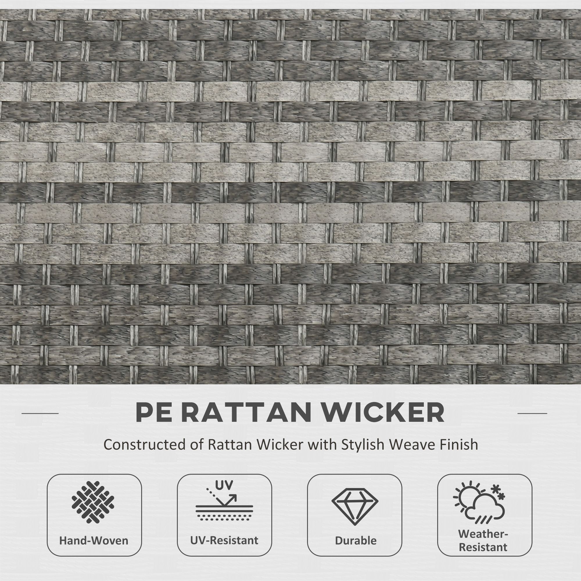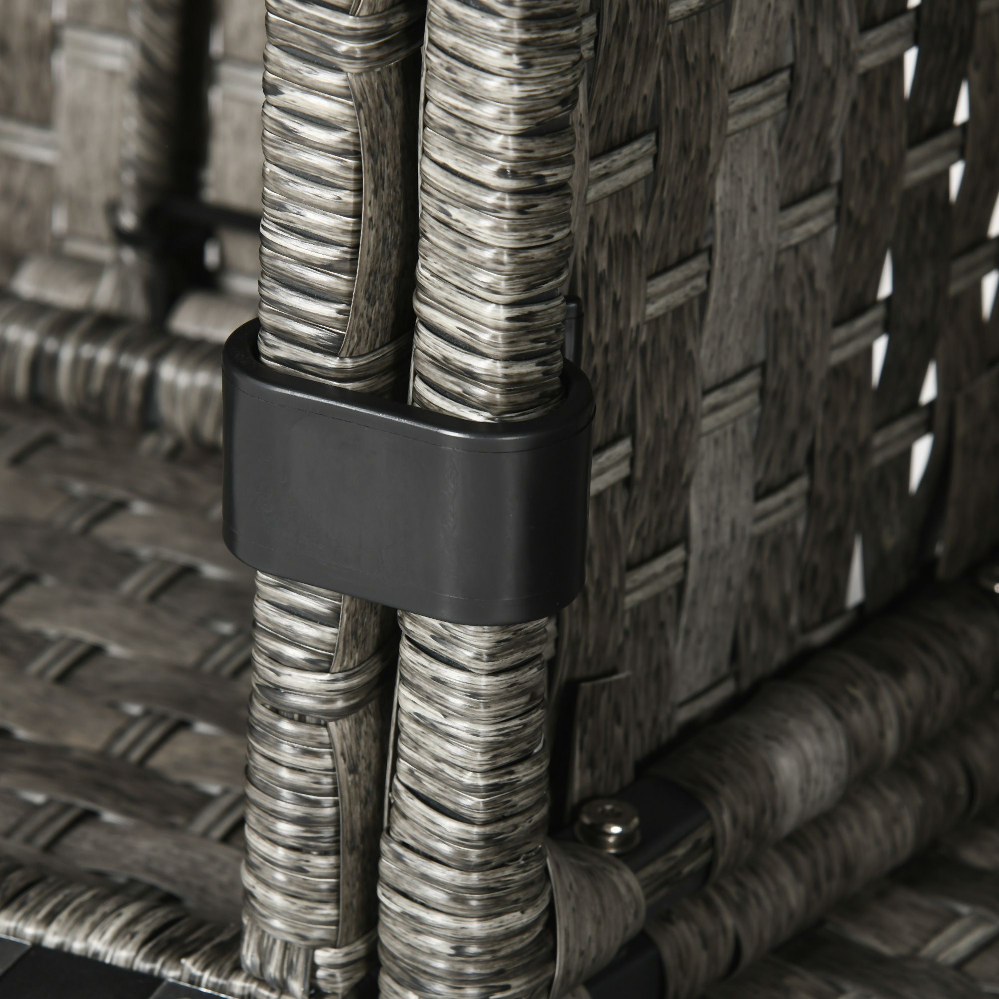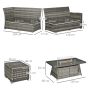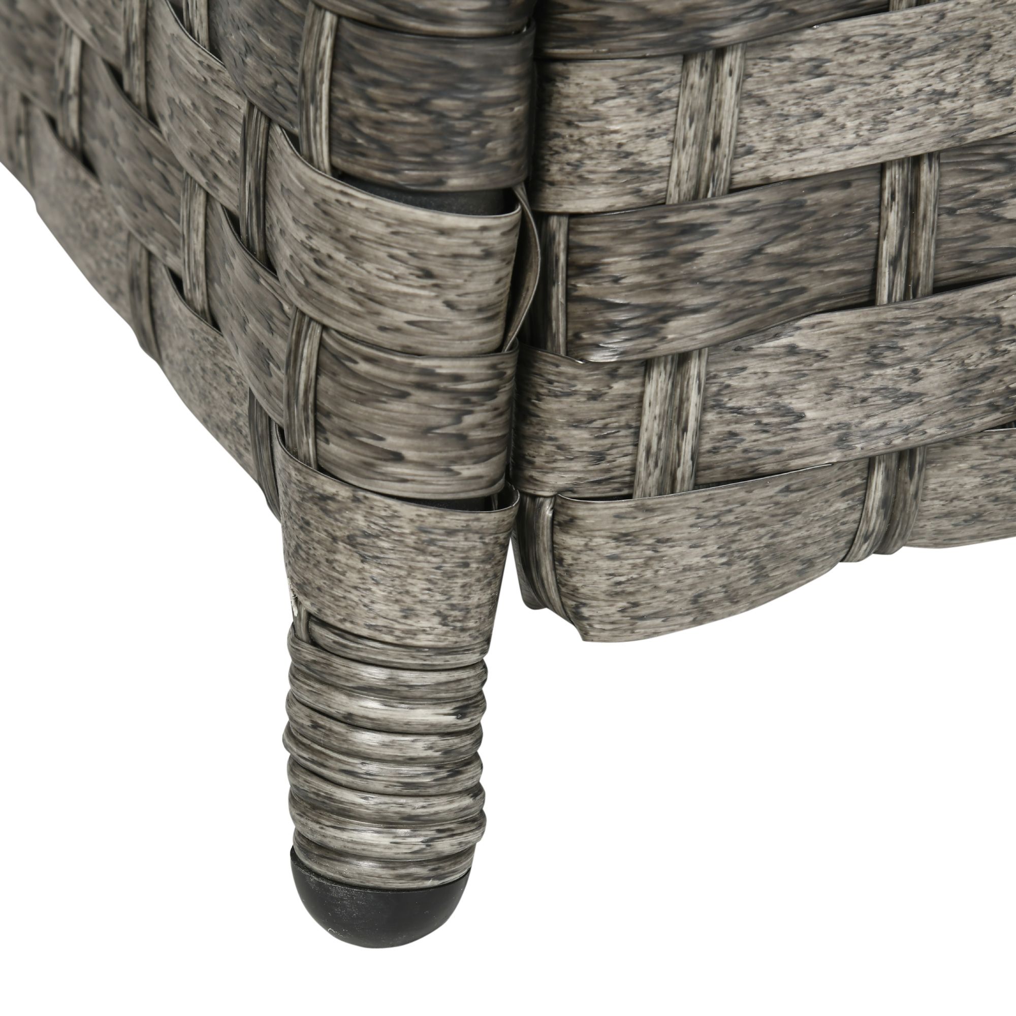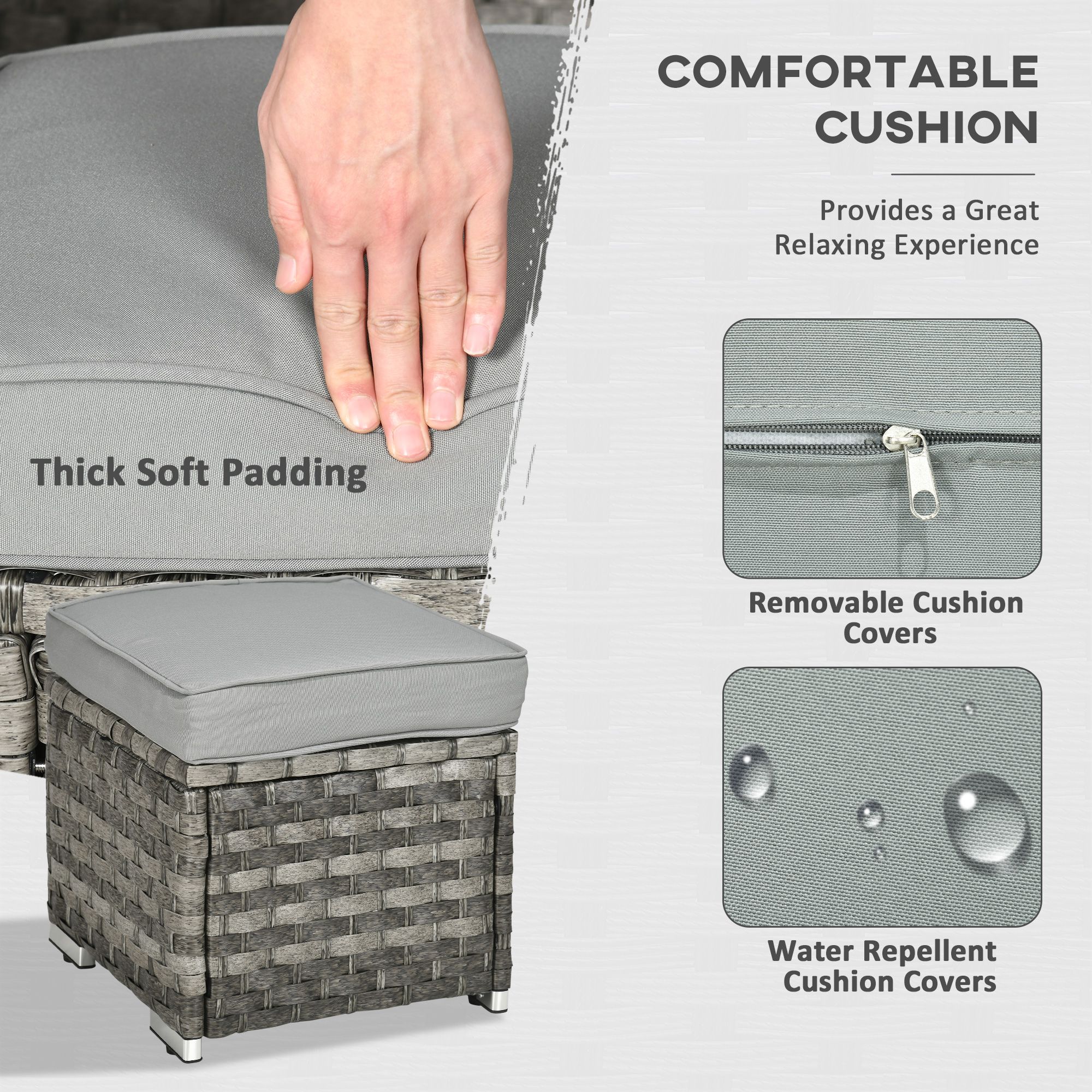 - Seven-piece set: Rattan garden furniture set comes with two corner loveseats, a standard loveseat, three footstools and matching fire pit table. Freestanding pieces to organise into a shape you want.