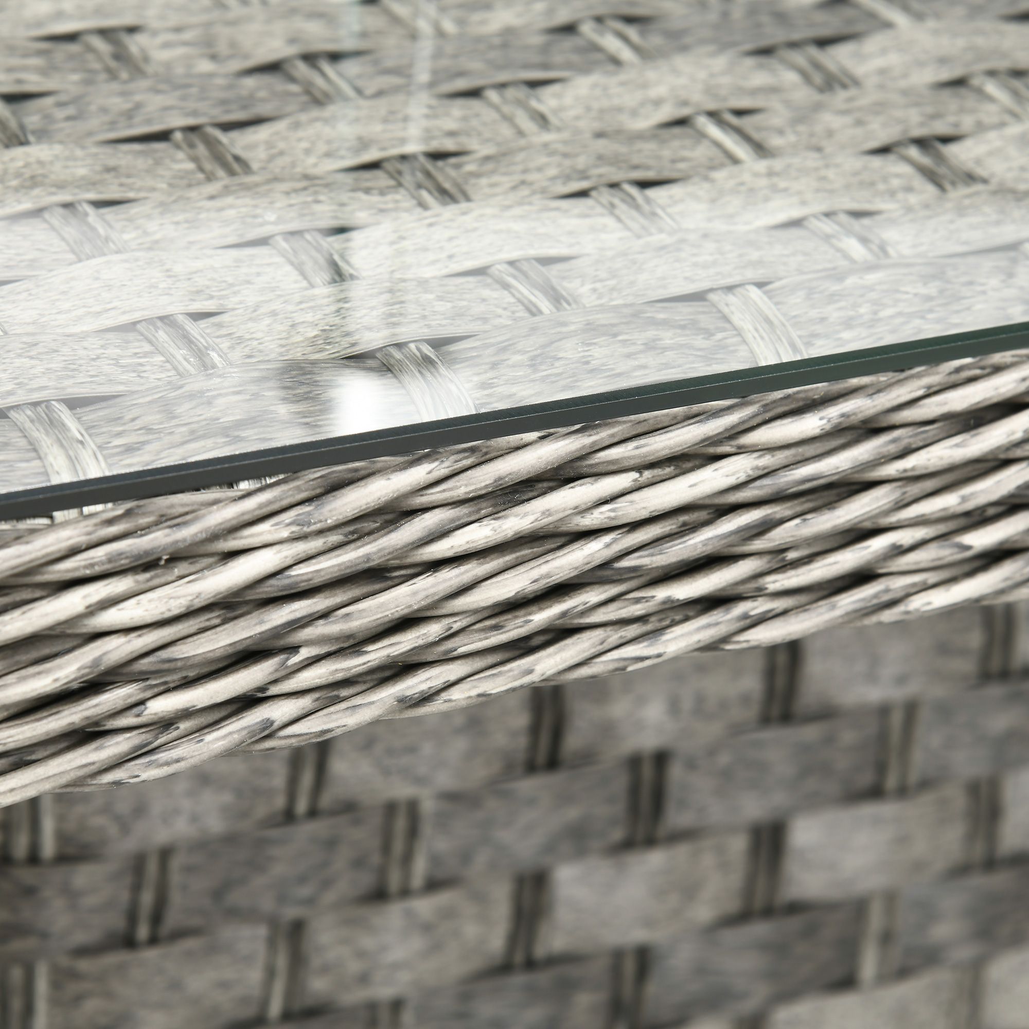 Relaxing evening times need never be cold again - do it in one with this rattan set, with fire pit table. The two corner loveseats, standard loveseat, three footstools and matching fire pit table mean there's room for your favourites to gather round, with the table giving you somewhere to eat and drink from. In the middle of the table, there's a fire pit: provides up to 50,000 BTU power - plenty of heat for the colder climes. There's a wind guard for the fire, so you can keep peace of mind, at all times.
