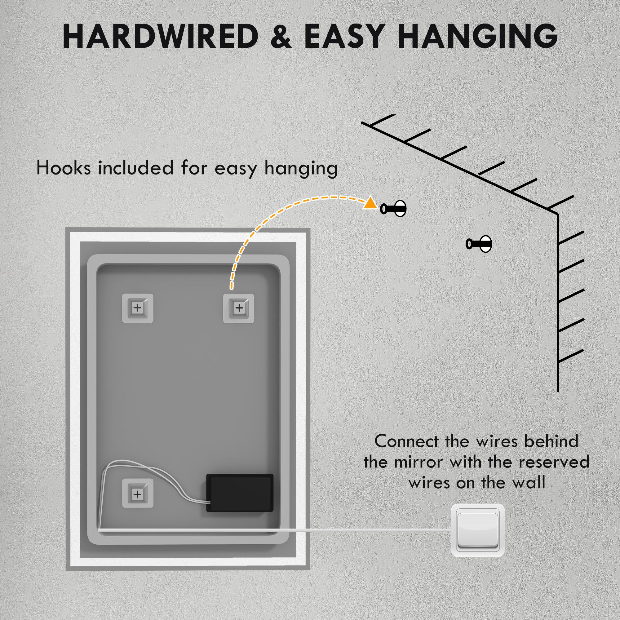 70 x 50cm LED Bathroom Mirror with Lights, Dimmable Makeup Mirror, Vanity Mirror with 3 Colour, Smart Touch, Anti-Fog