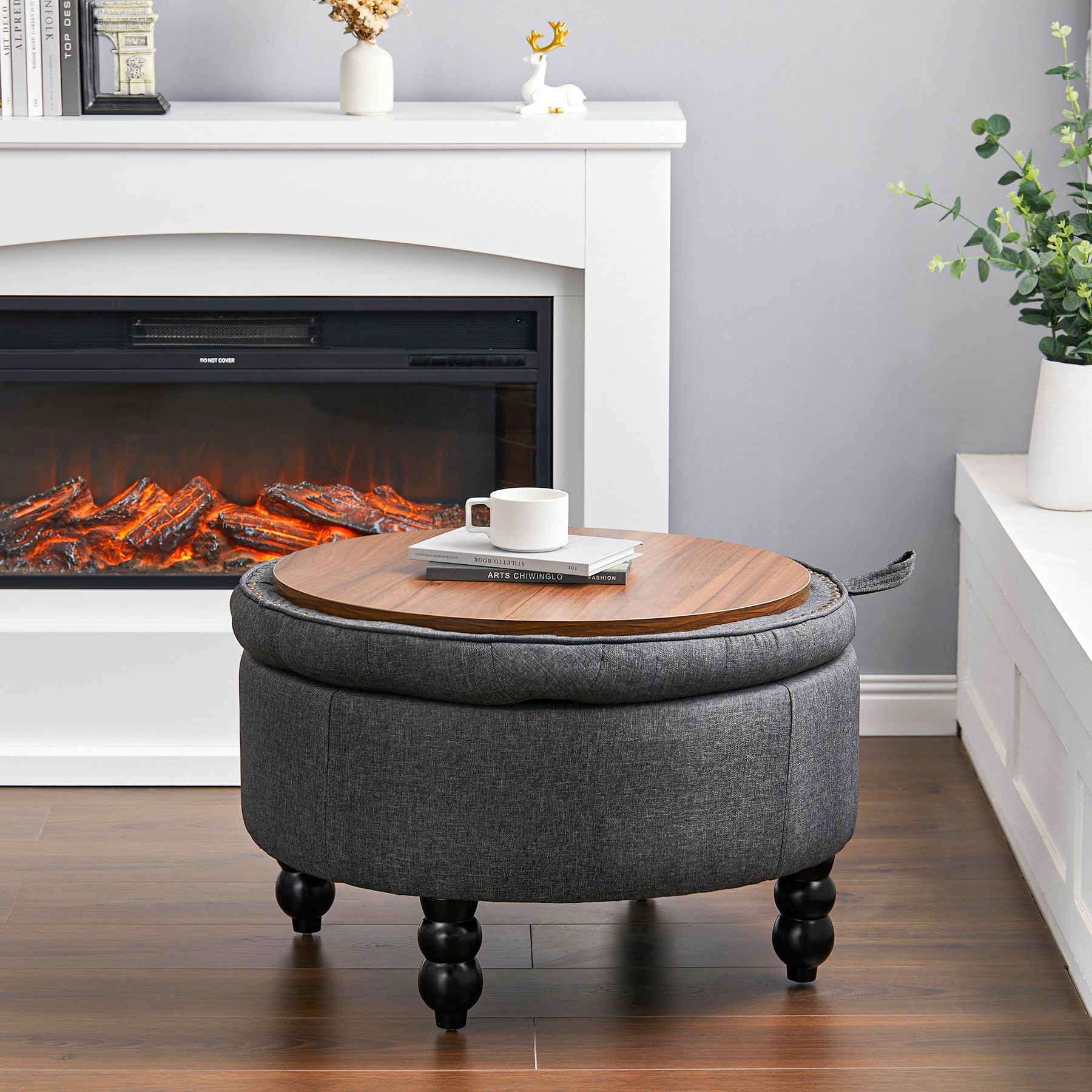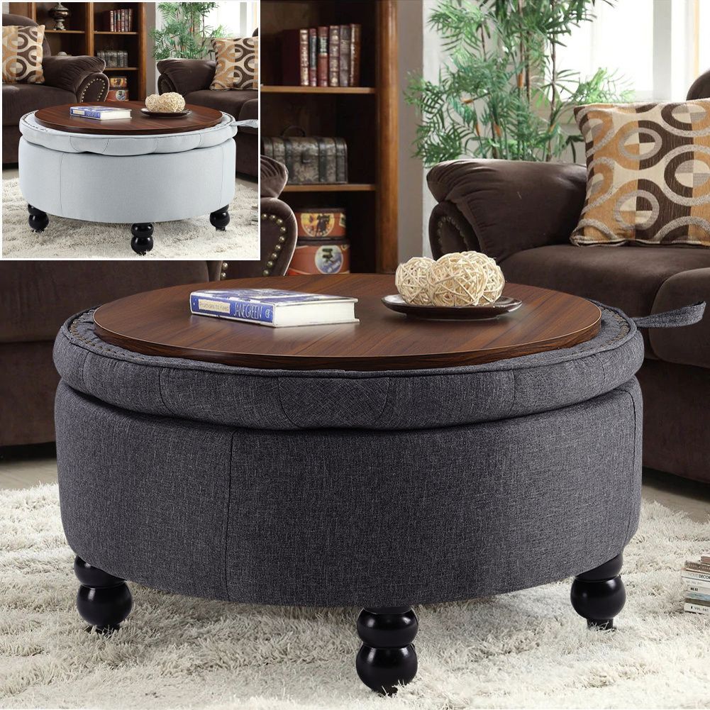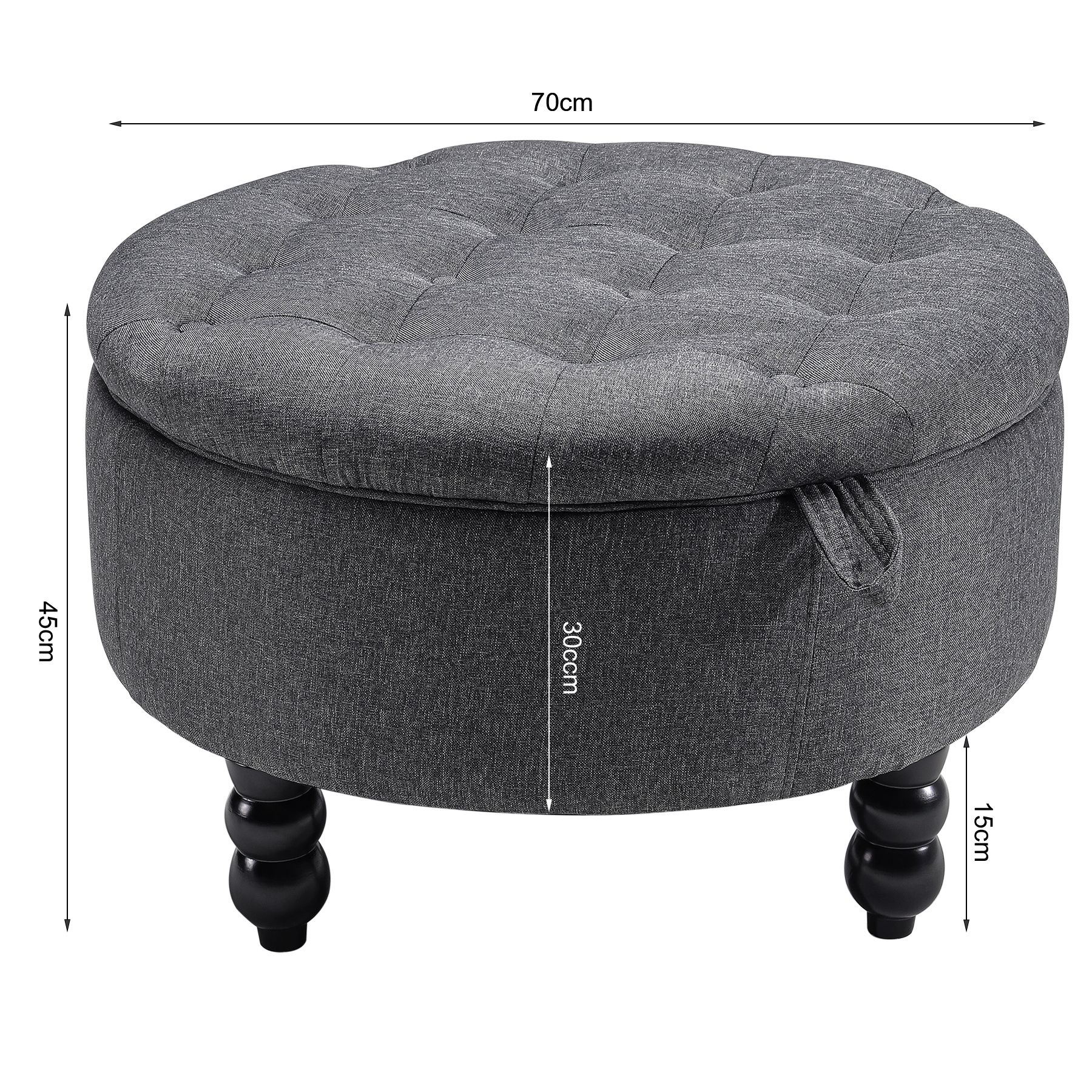 70cm Dia. Tufted Round Cocktail Ottoman Storage Footstool