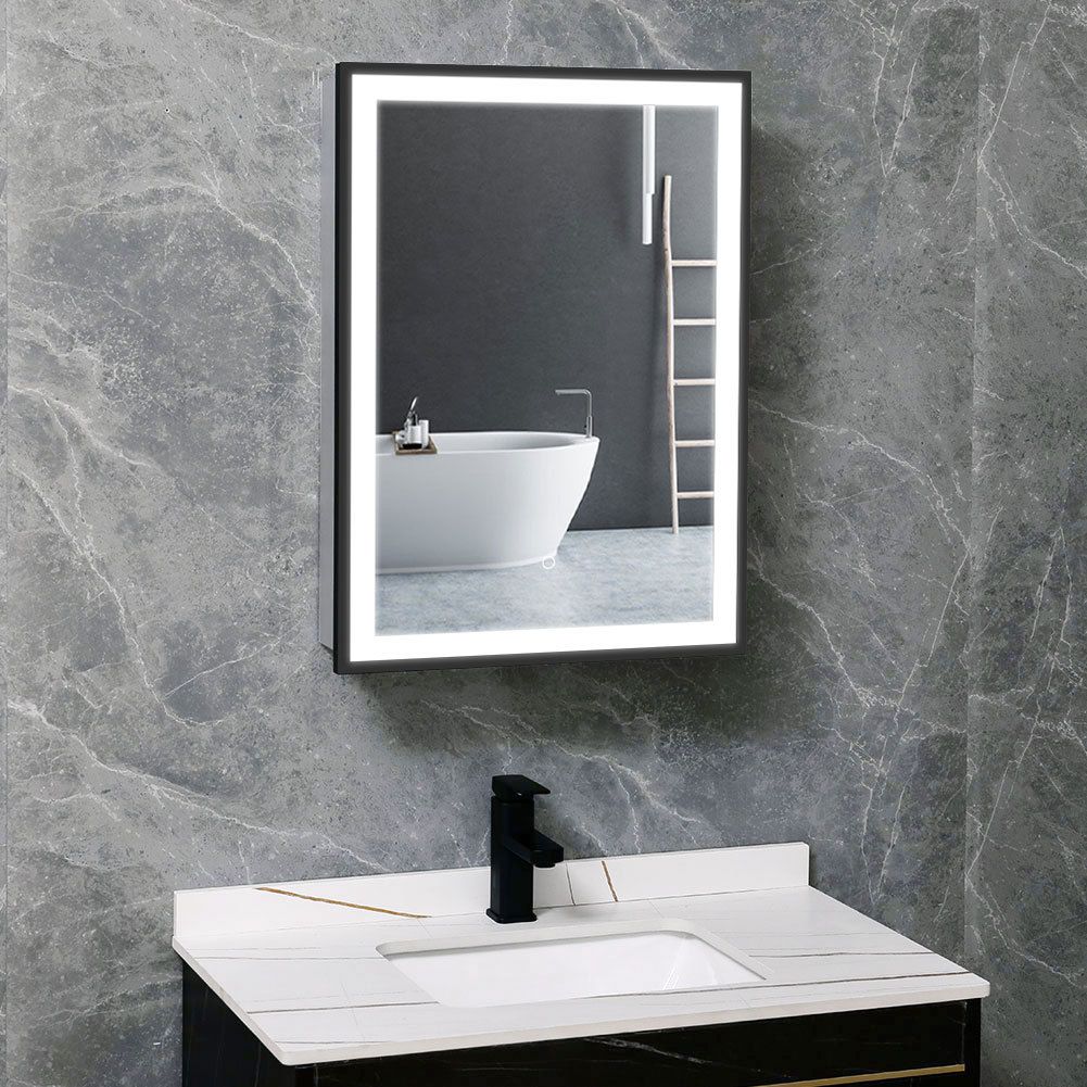 Behold the epitome of bathroom elegance: our mirror cabinet. Enveloped in a radiant LED bar, it bathes your visage in 360-degree luminance, elevating your skincare ritual to celestial heights. Tailor the ambiance with customizable lighting, while the sleek black frame exudes timeless sophistication. Crafted from premium aluminum, this masterpiece marries style with substance, a harmonious union of form and function.