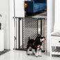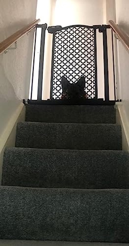 - VERSATILE USE: With unique carved pattern design, this pet gate is ideal for doorways, hallways, stairs, etc. DIMENSION: Overall dimension: 68W x 76.2H cm. Our gate only fit the opening 74 to 80 cm, please measure your opening before purchasing. Assembly required
