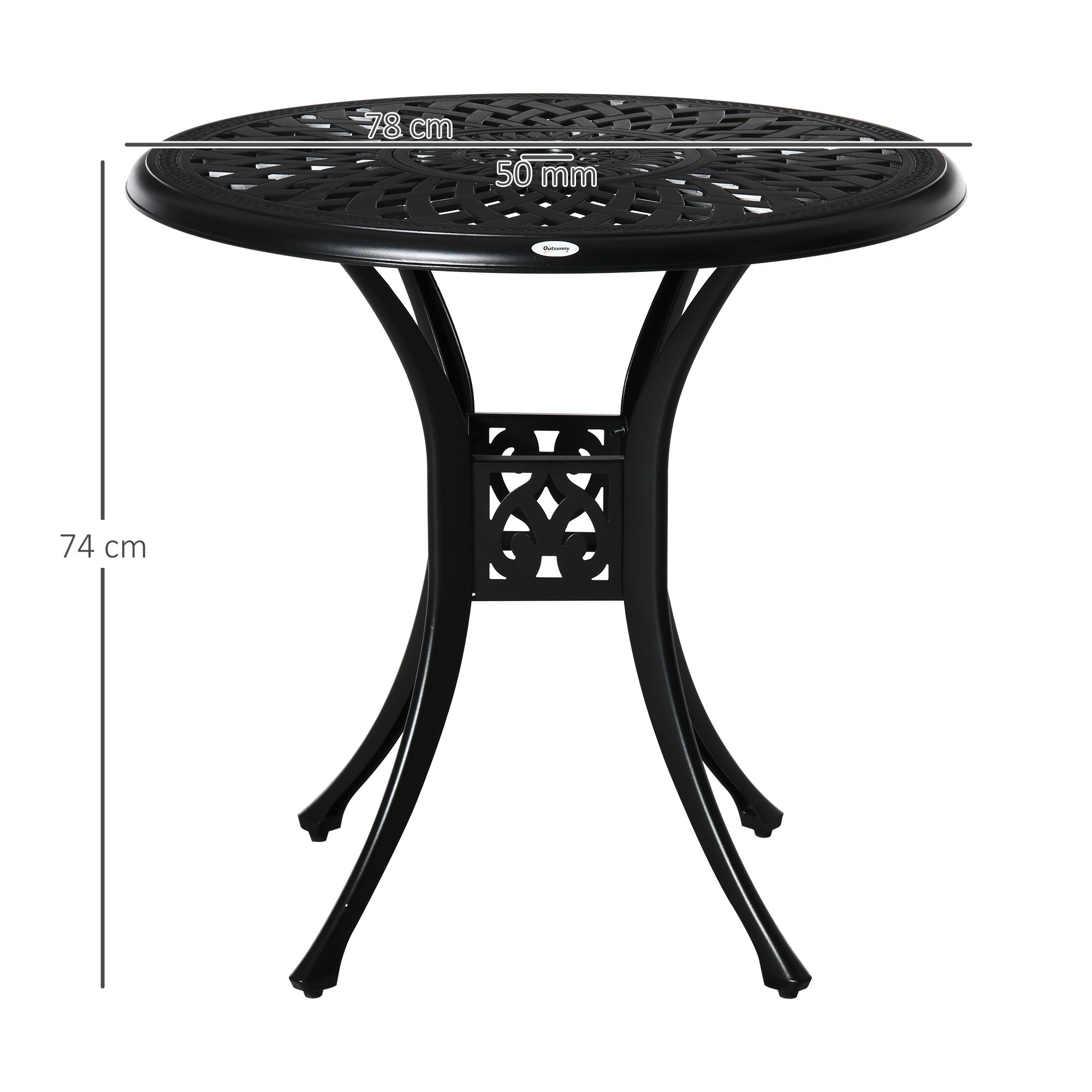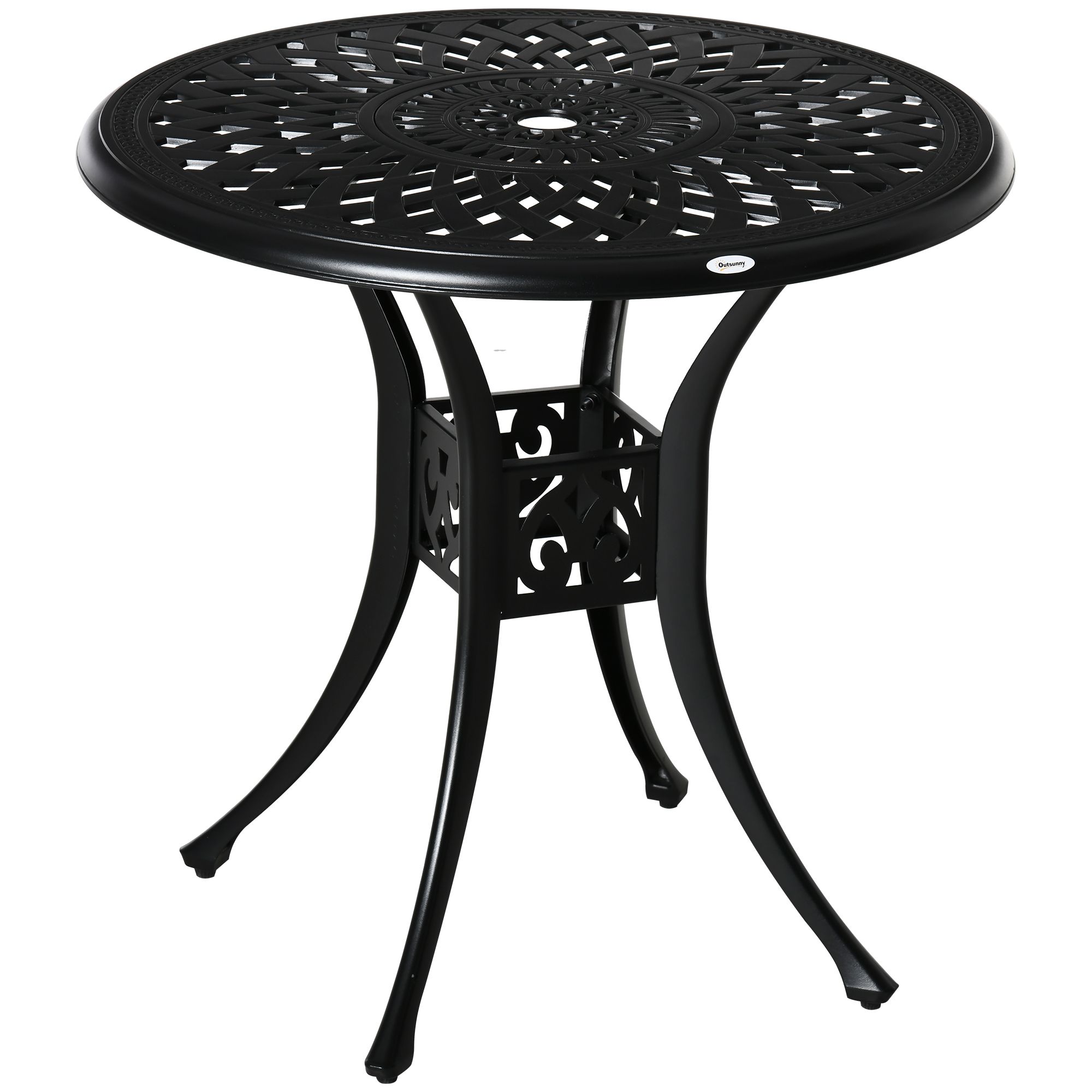 78cm Round Garden Dining Table Bistro Set with Parasol Hole Antique Cast Aluminium Outdoor Table, Black