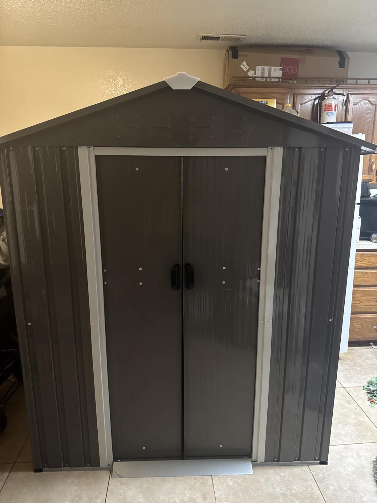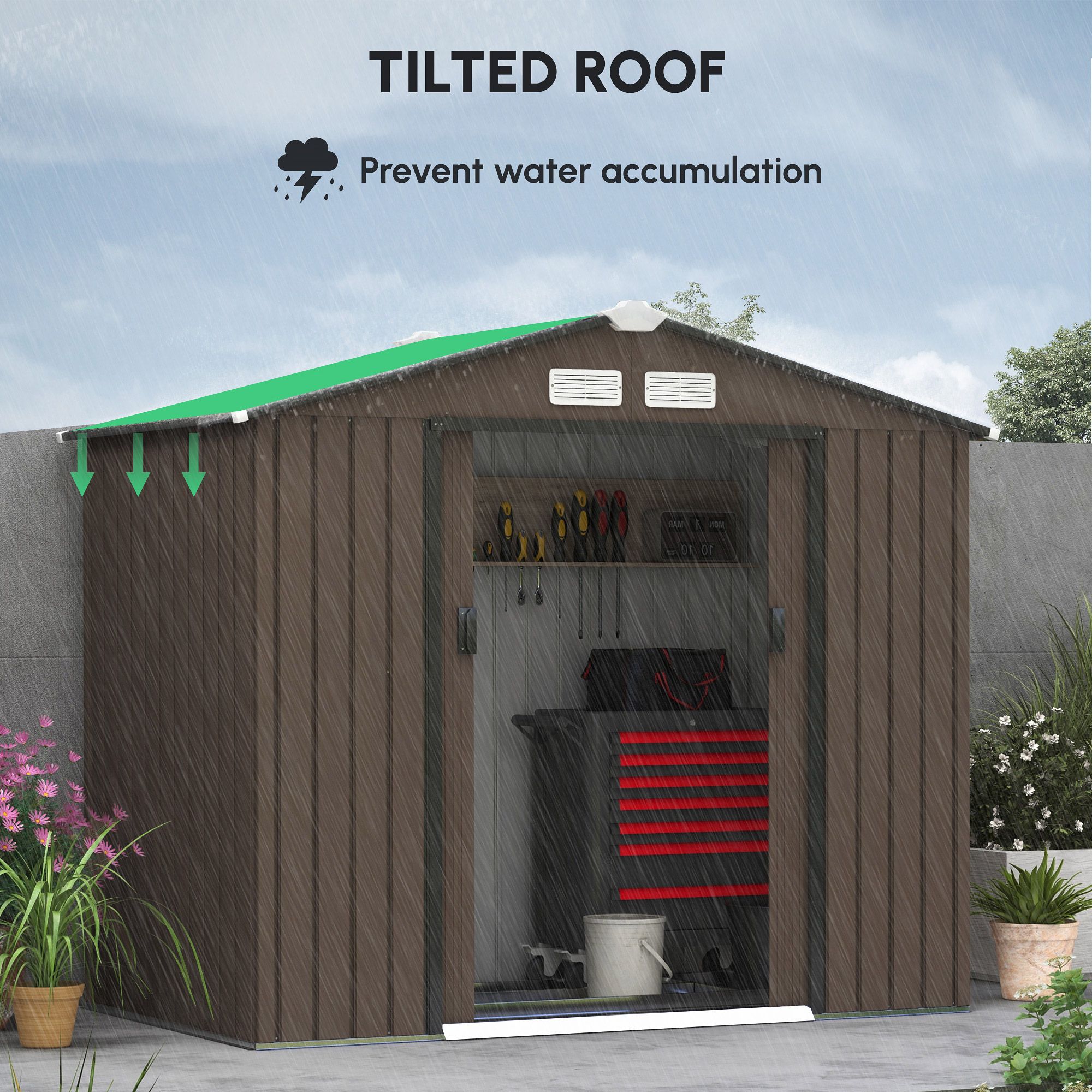7ft x 4ft Lockable Garden Metal Storage Shed Large Patio Roofed Tool Storage Building Foundation Sheds Box Outdoor Furniture, Brown