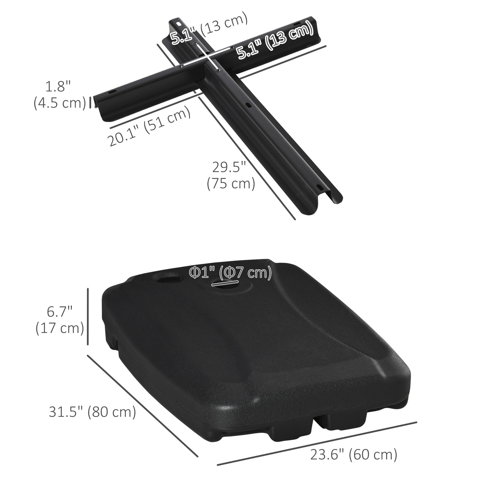 7kg Square Parasol Base Portable Umbrella Stand Weights for Cantilever Banana Parasol with Wheels, Water and Sand Filled, Up to 75kg, Black
