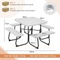 8-person Square Picnic Table Bench Set with 4 Benches and Umbrella Hole-White